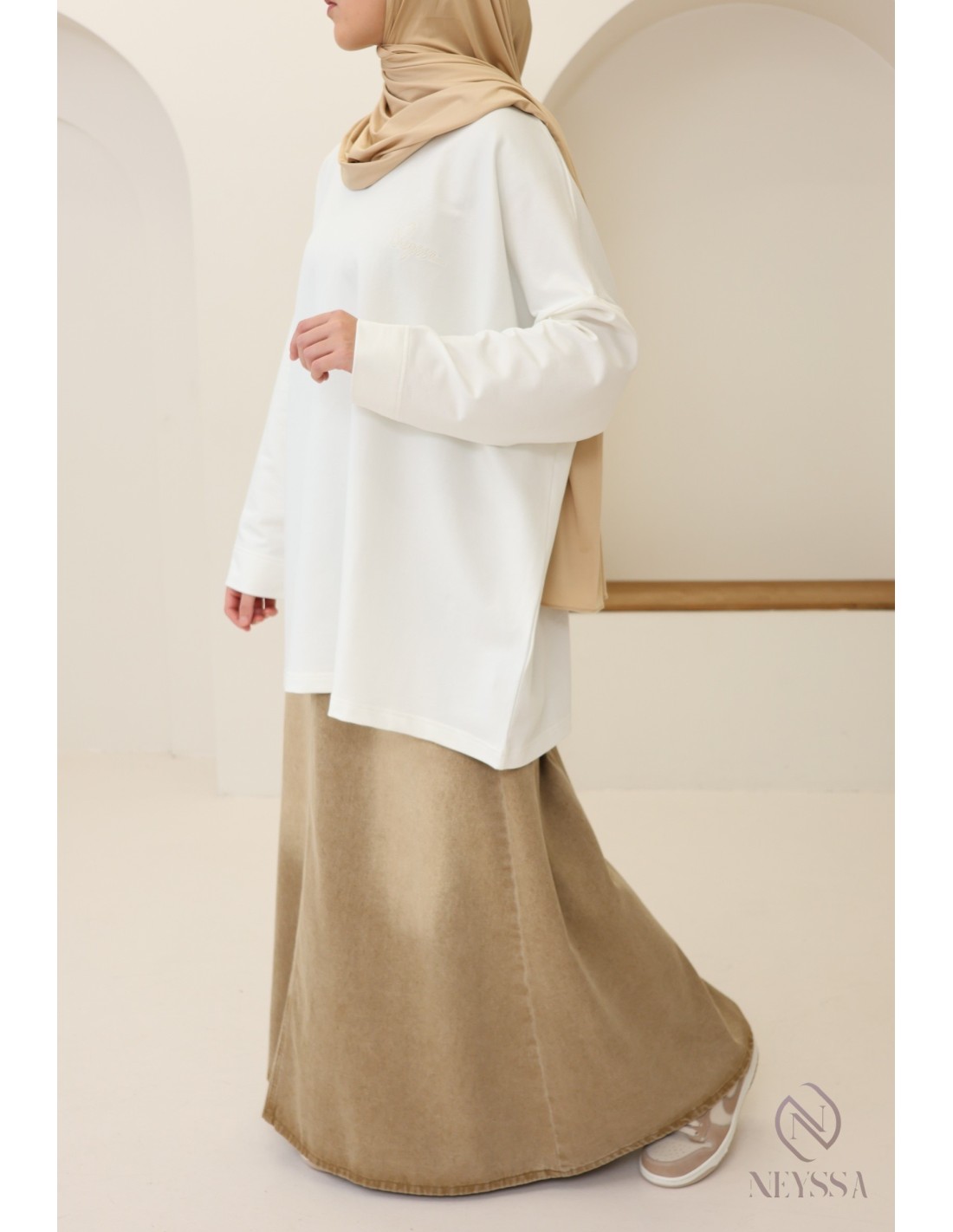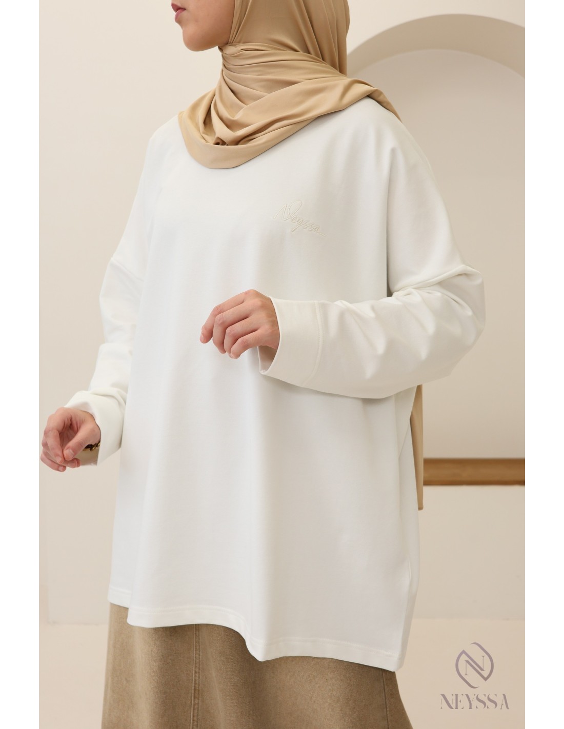 Oversize-Sweatshirt-T-Shirt in Elfenbein mit Rundhalsausschnitt und Neyssa-Stickerei