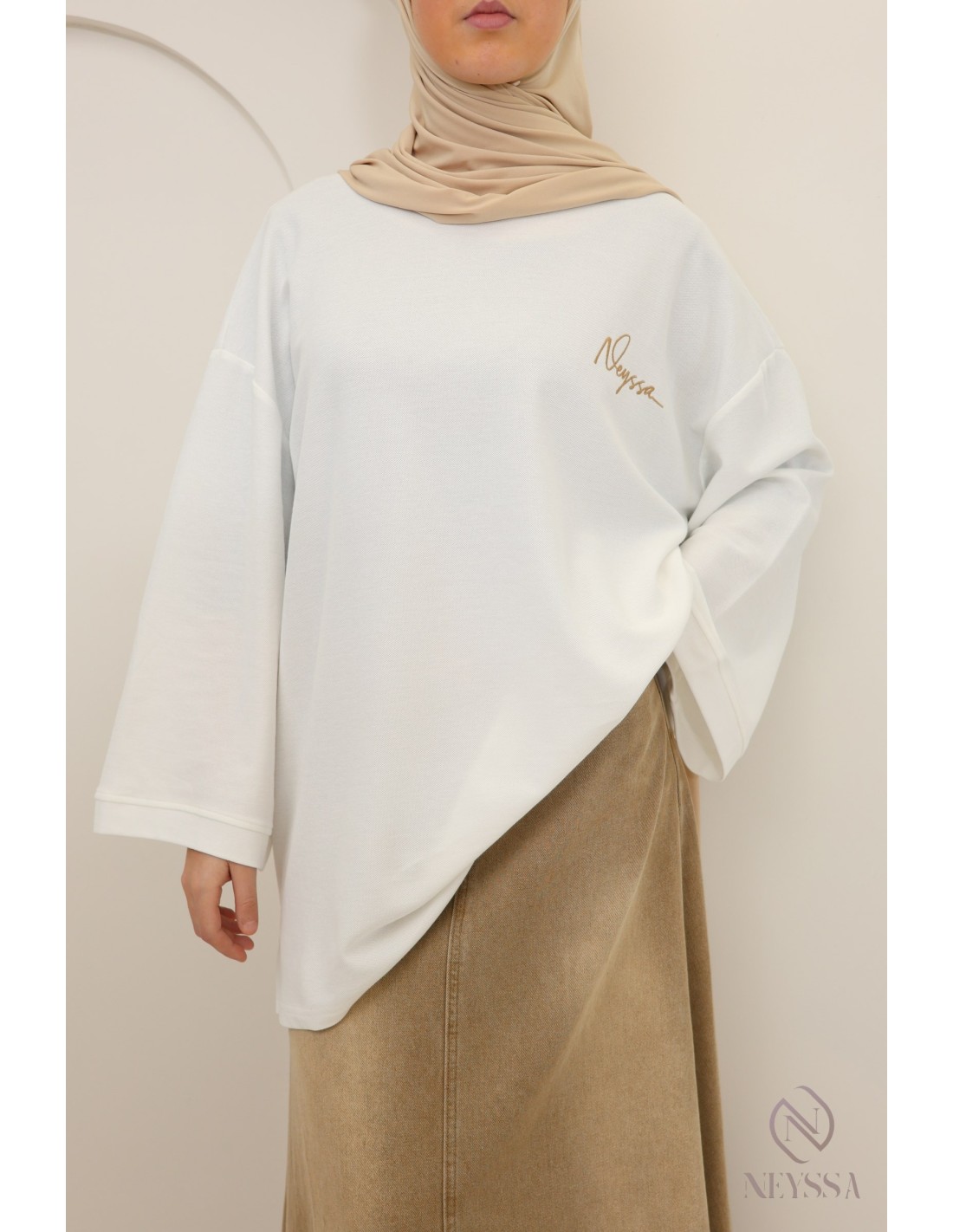 Weites weißes Langarm-T-Shirt mit Stickerei Neyssa