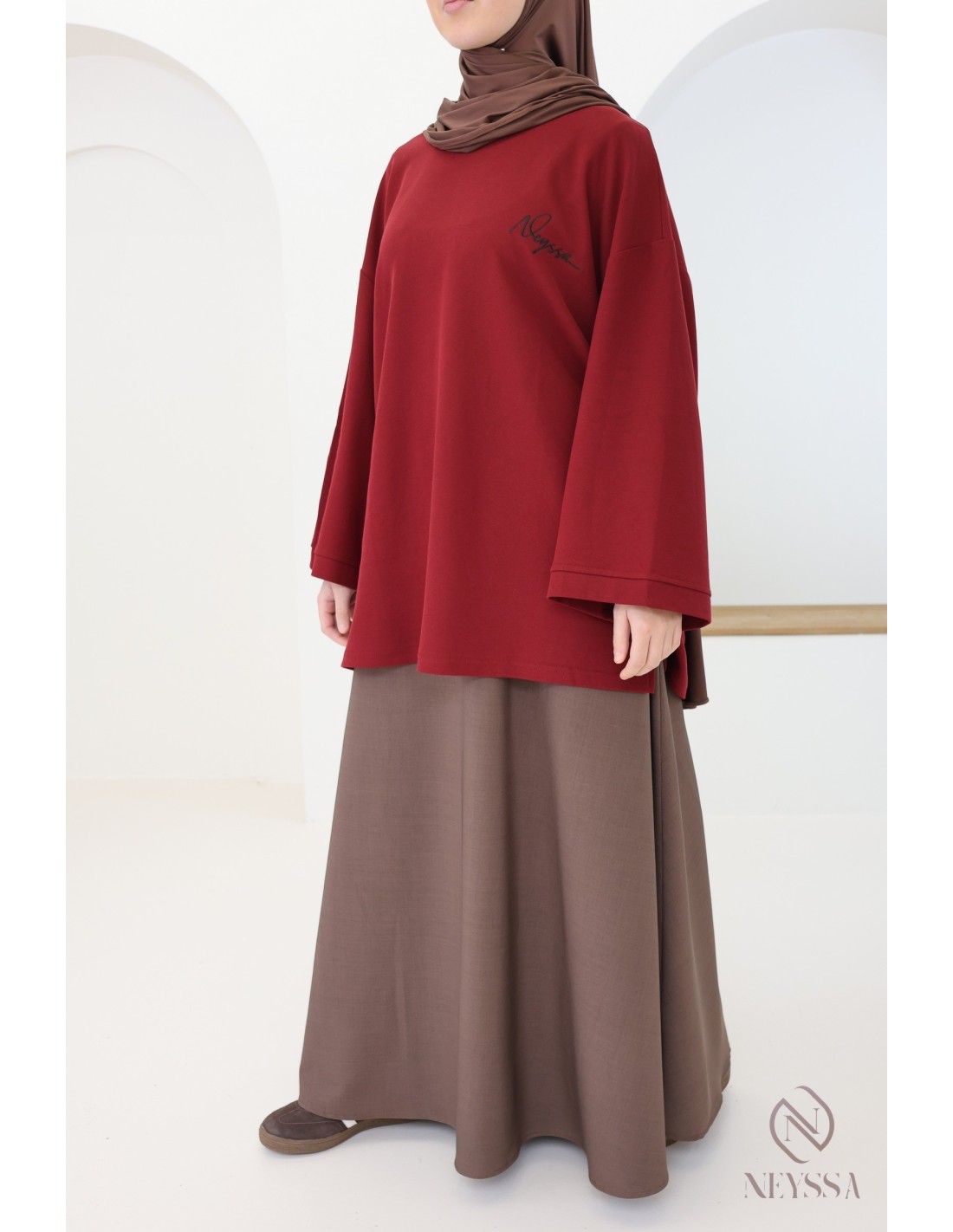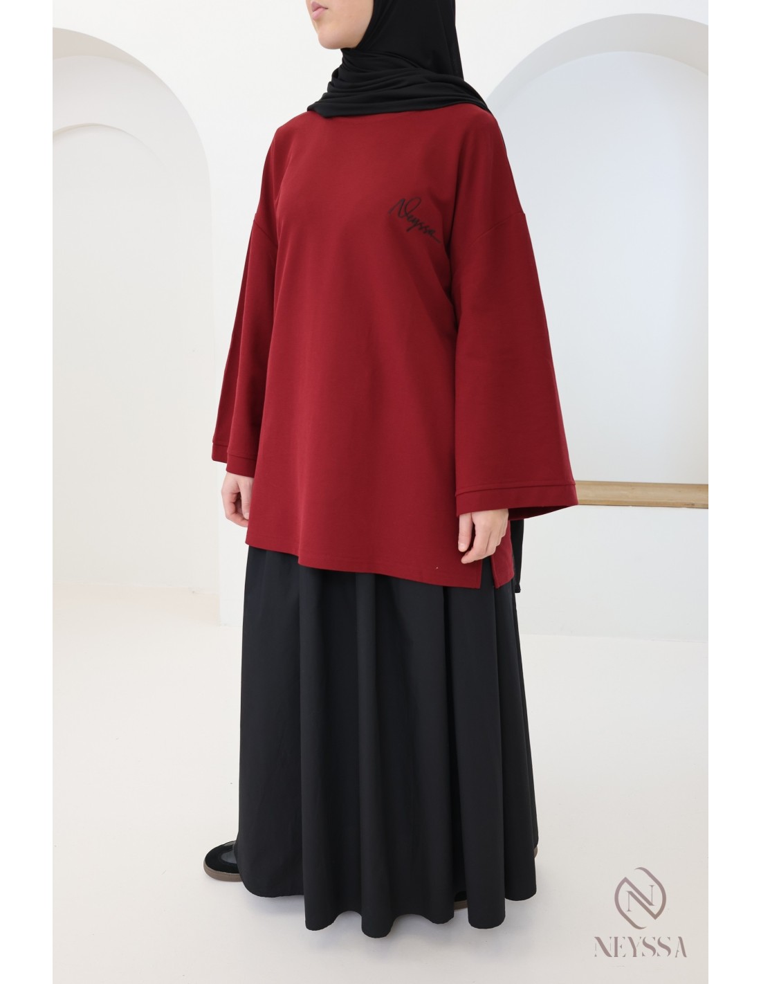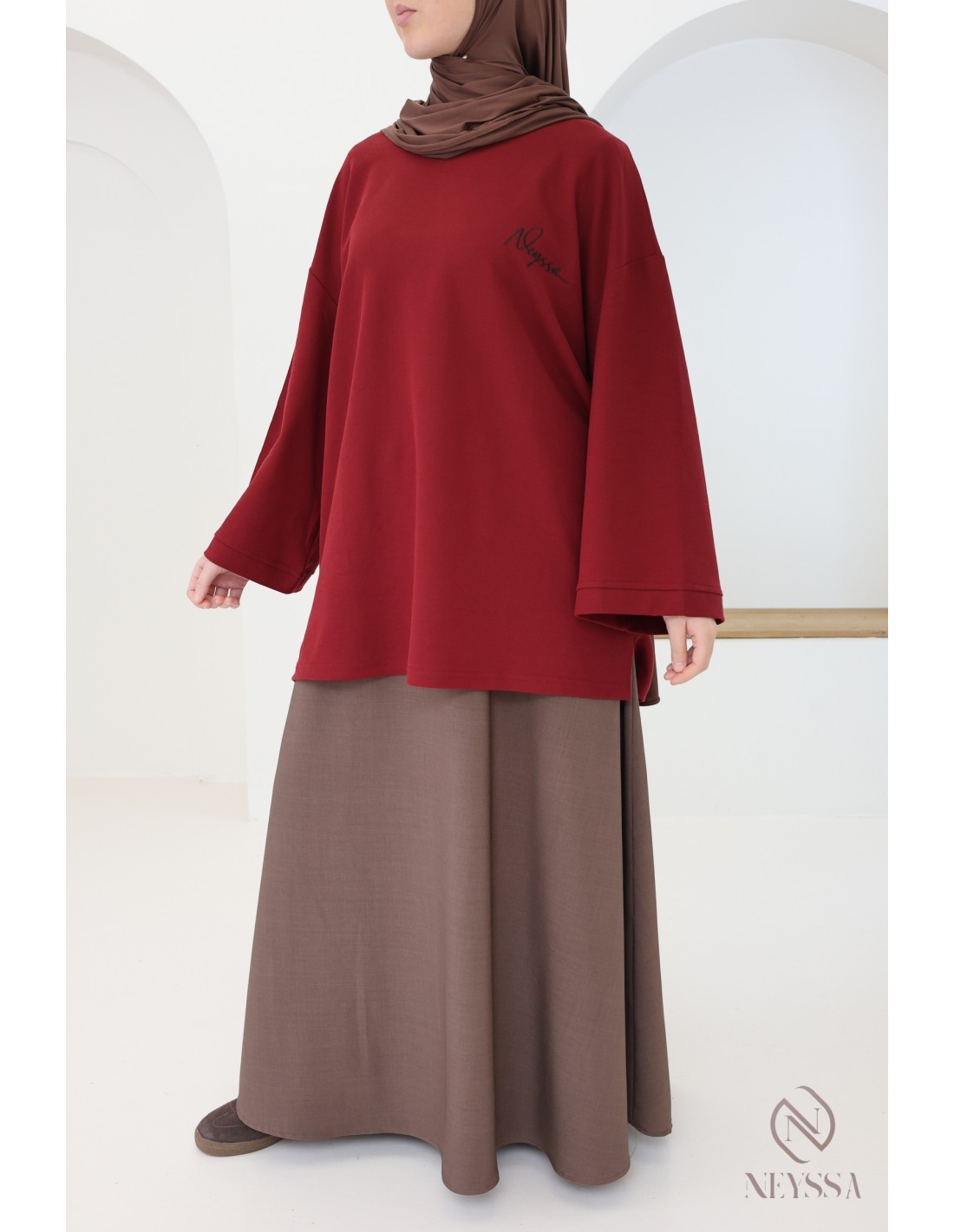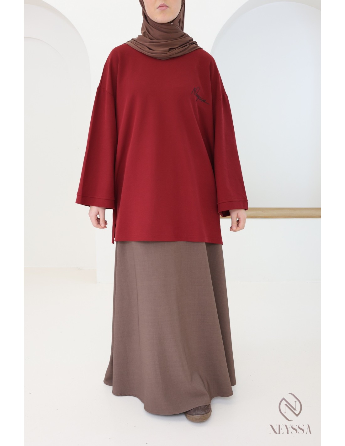 Langarm-T-Shirt Neyssa in Bordeaux für Damen, Oversize-Schnitt