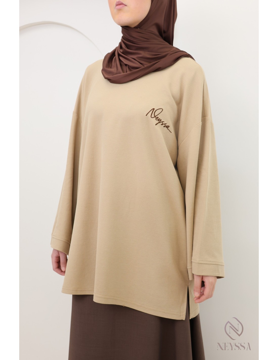 Sie suchen zurückhaltende Kleidung für Frauen, die einen zurückhaltenden Stil bevorzugen, und Sportswear? Entdecken Sie bei Neyssa unser exklusives Modell: ein unverzichtbares Oberteil für Ihre Garderobe, perfekt für muslimische Frauen, die Sport treiben und dabei elegant bleiben möchten.