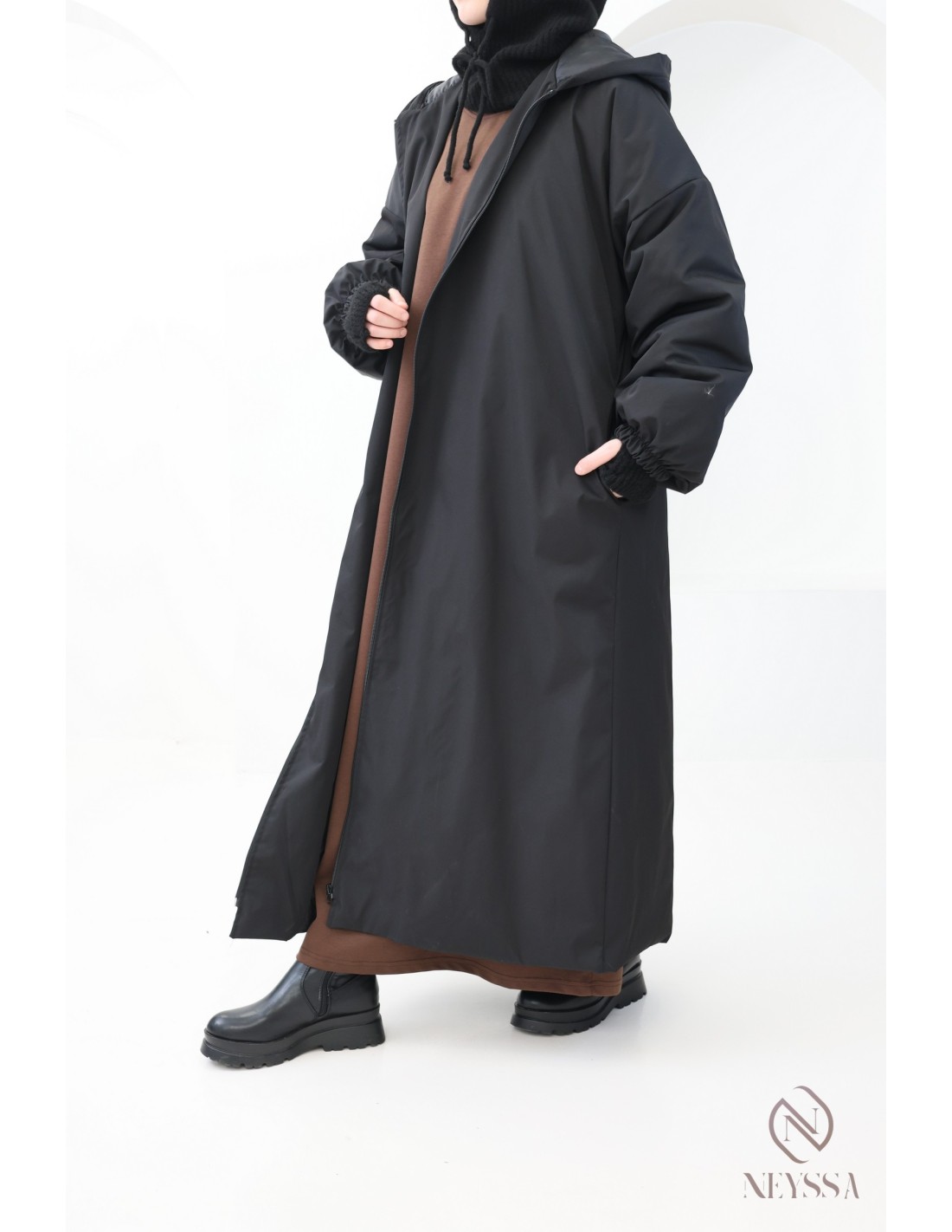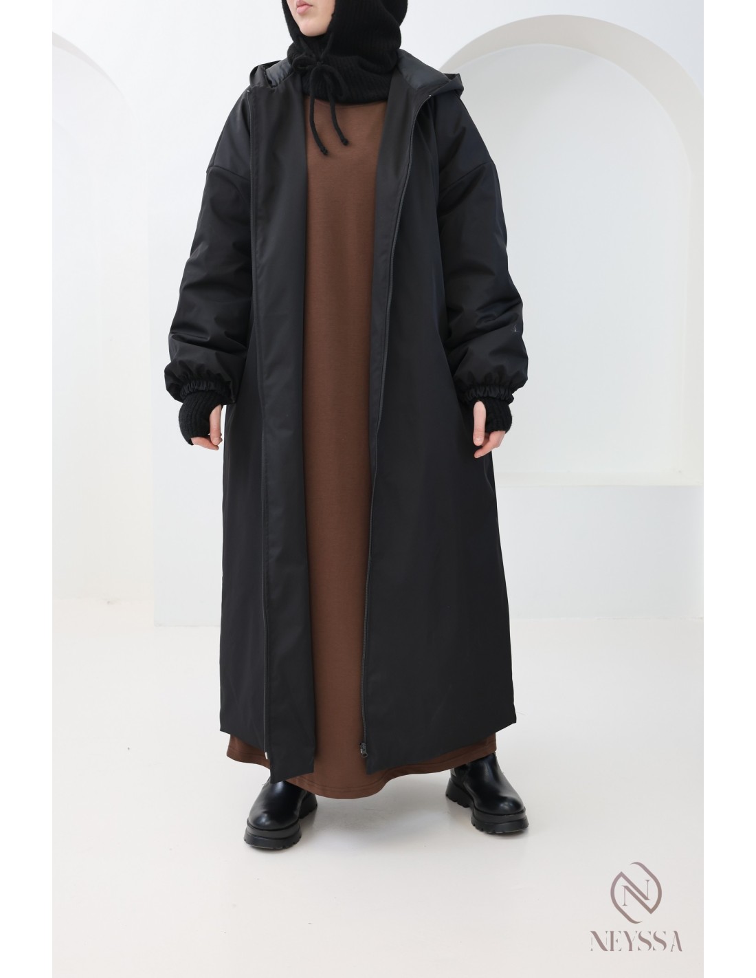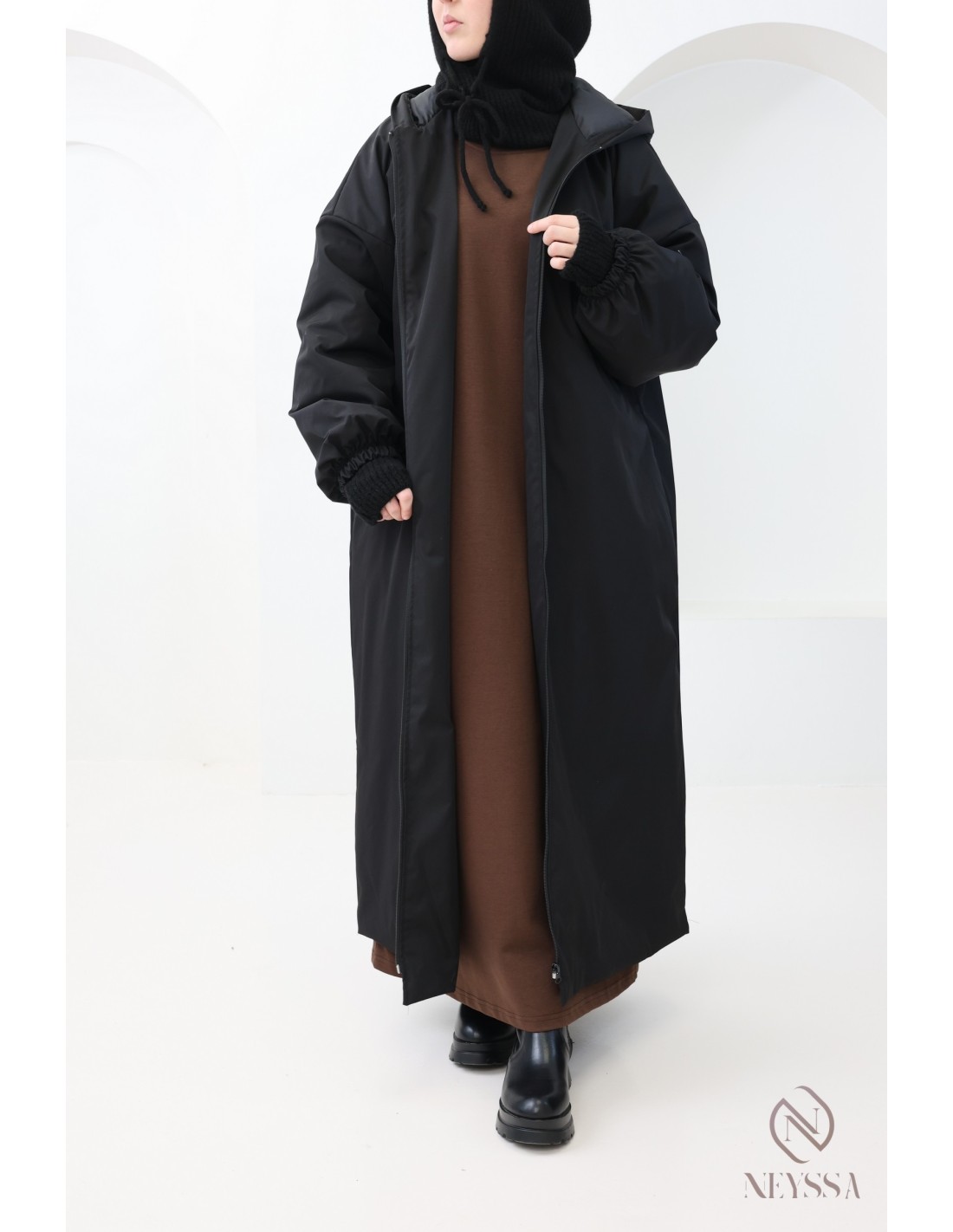 Dicker langer Parka-Mantel in Schwarz für Hijabi-Frauen für den Winter