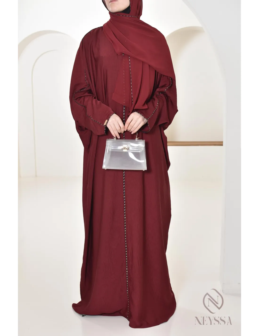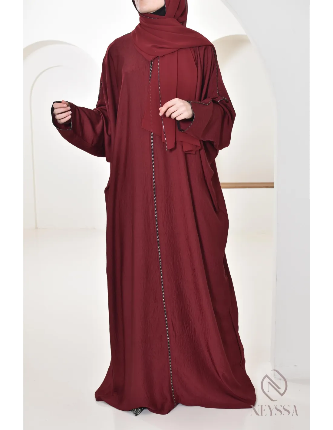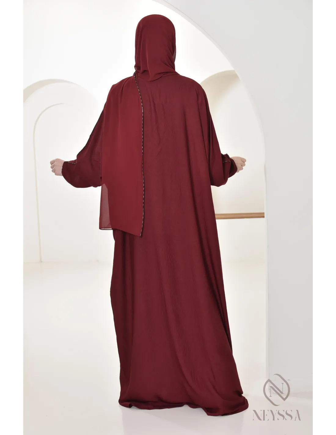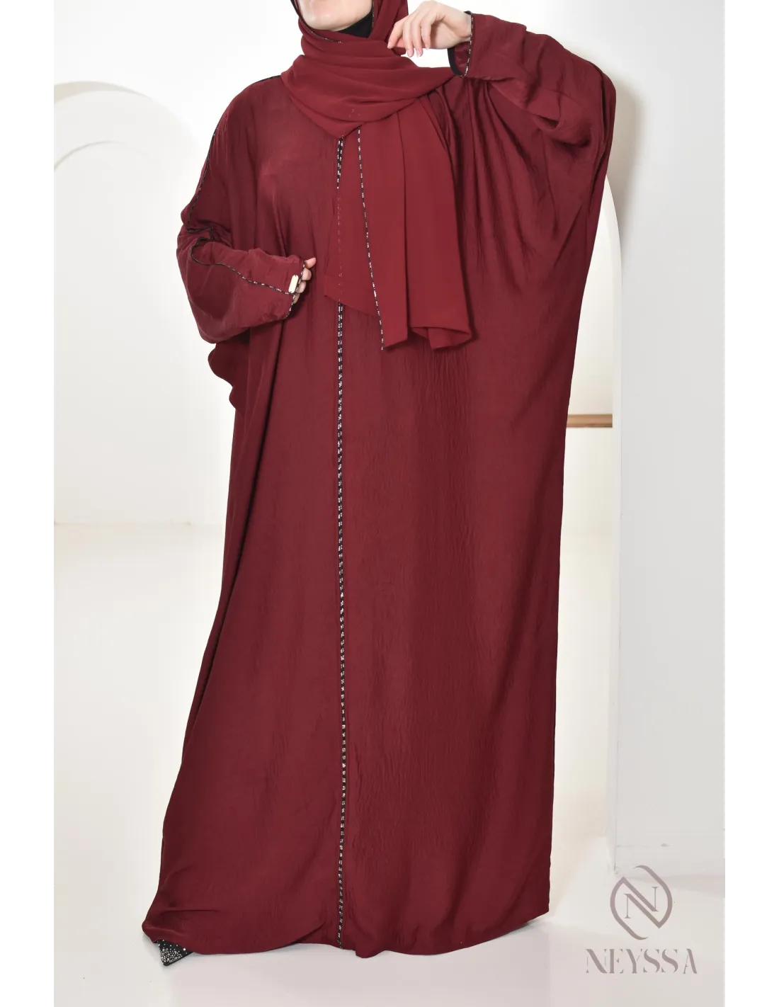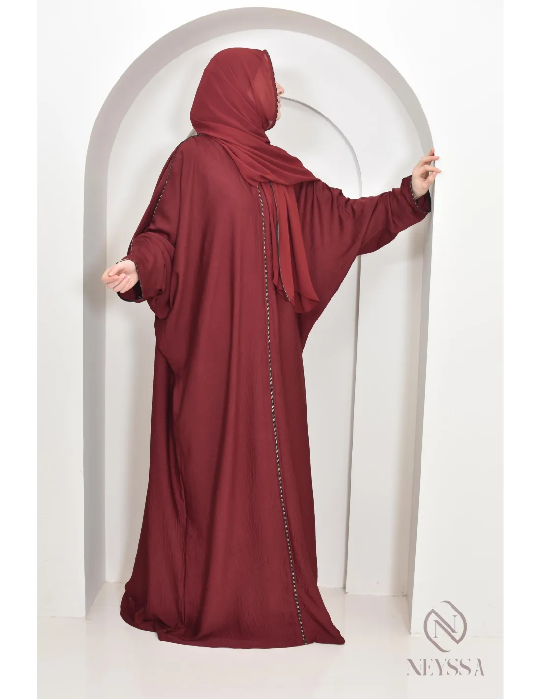 Abaya butterfly cut burgundy integrated hijab : By Neyssa