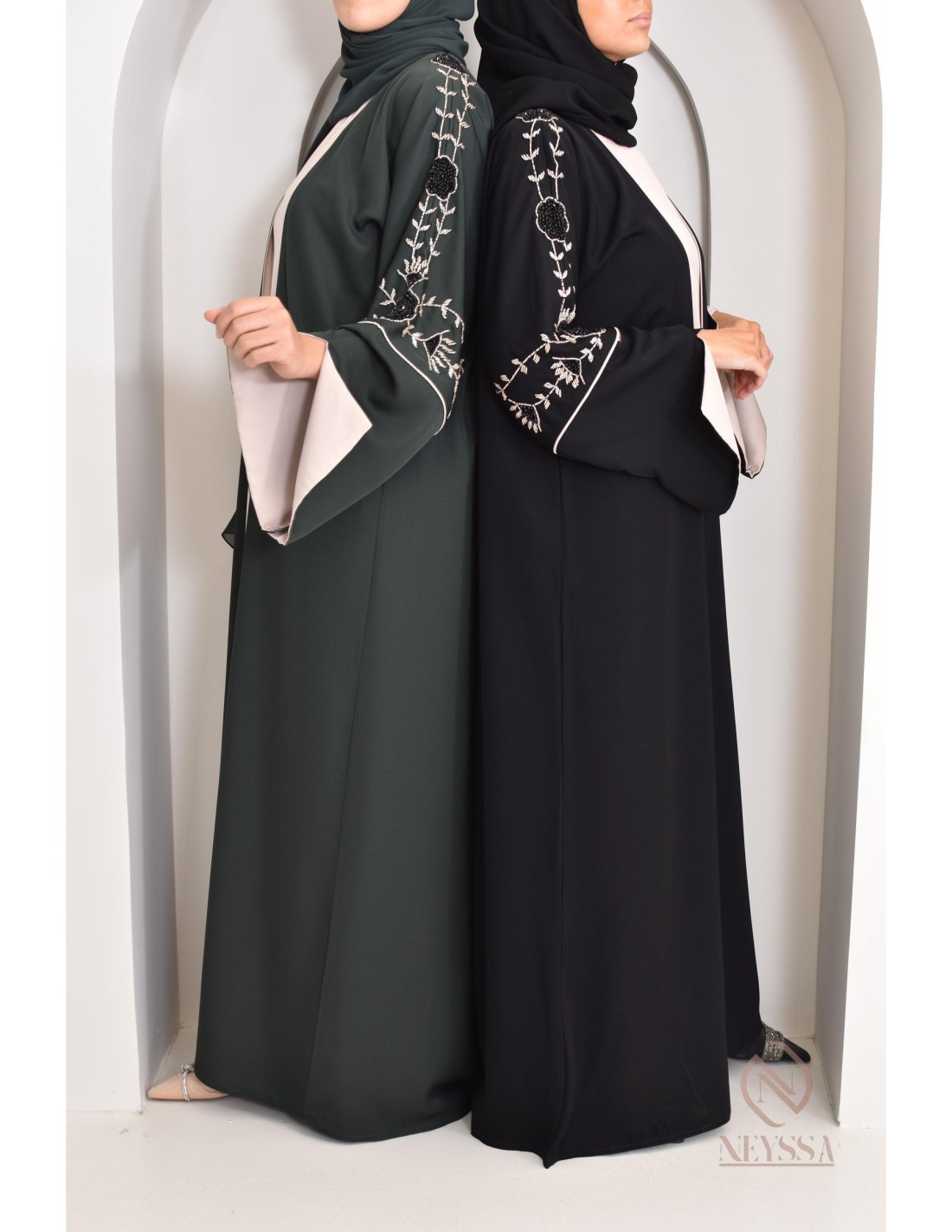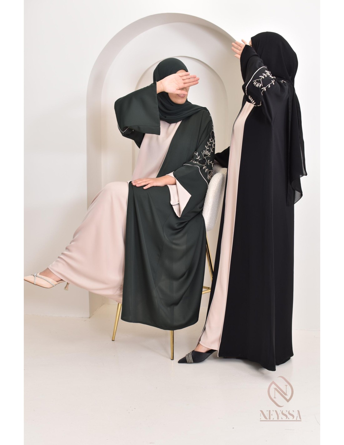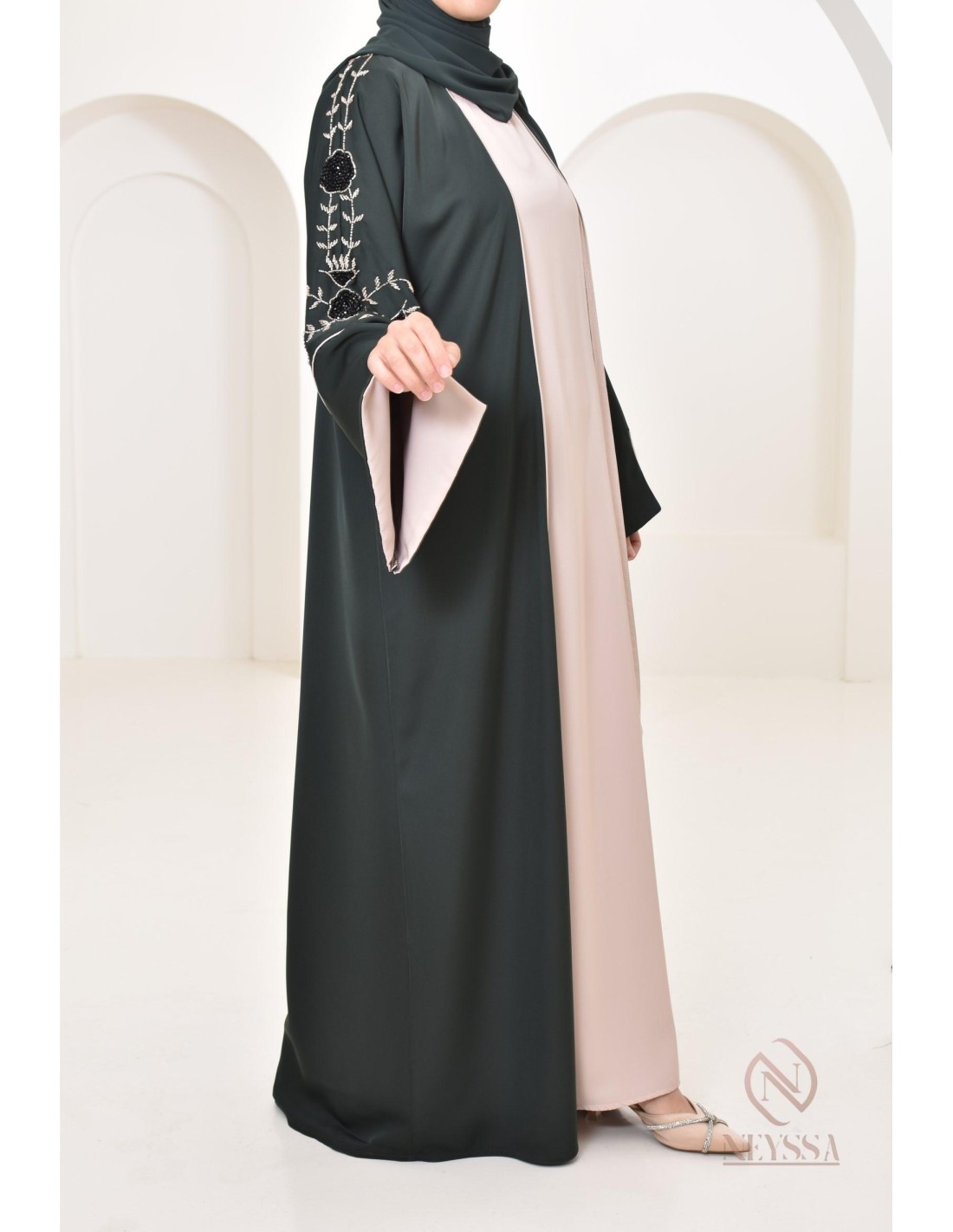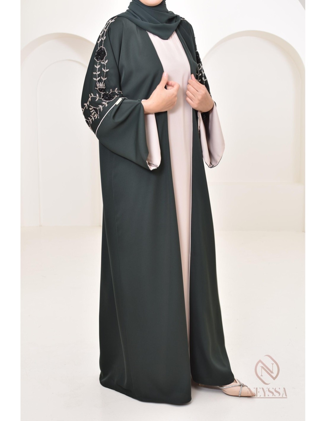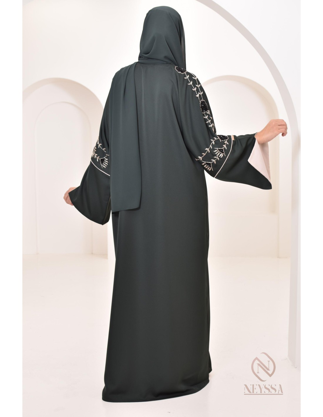 This Abaya Dubai set with Confection Neyssa kimono embodies elegance and sophistication. This unique set creates a perfect harmonious outfit for the most beautiful moments of your life.