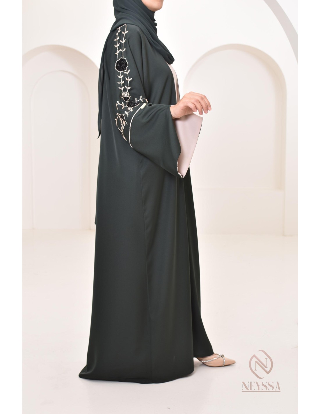 Abaya Dubaï kimono WALIYA Bottle Green
