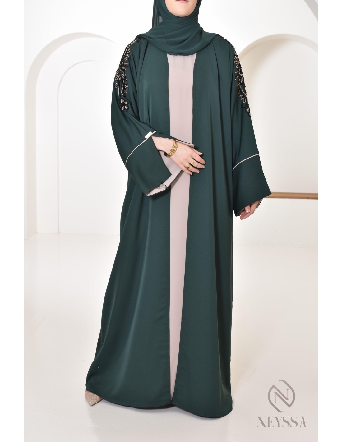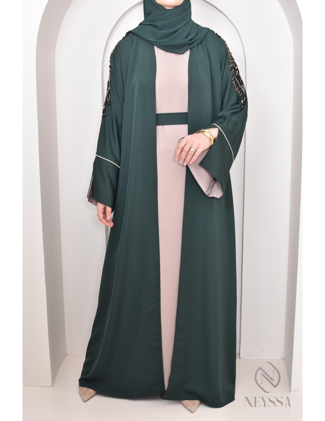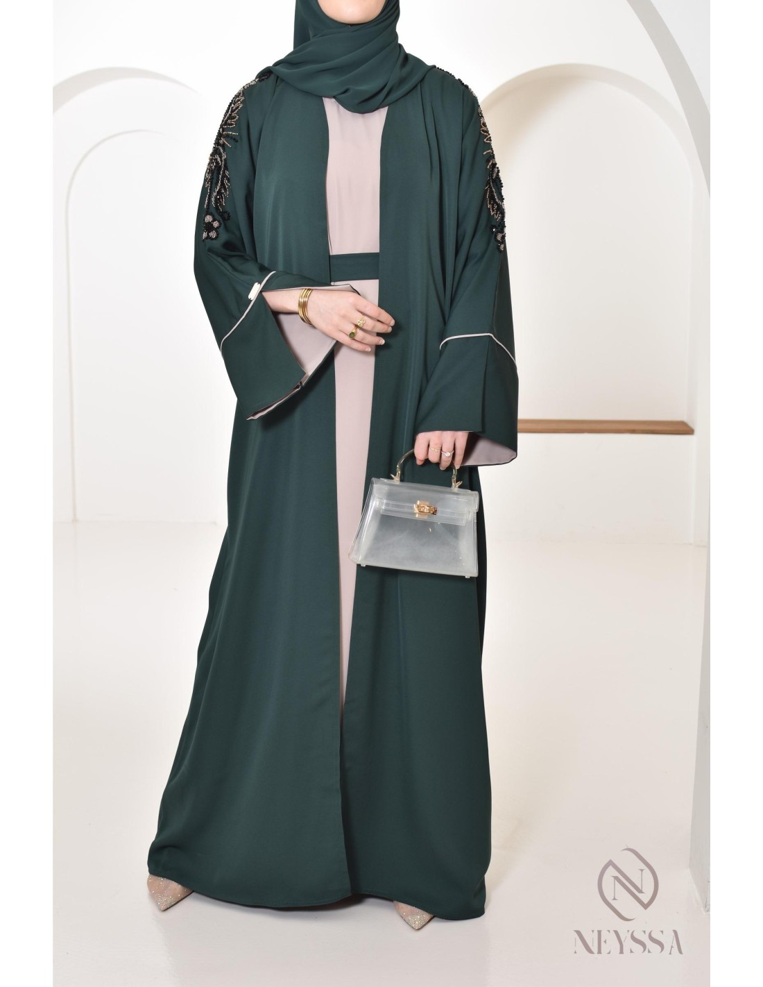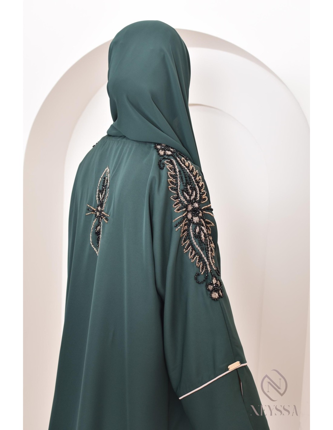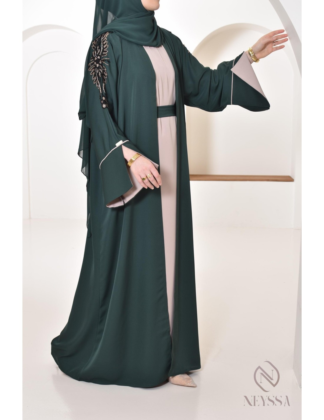 Abaya kimono Dubaï with bottle-green rhinestones: Special occasions
