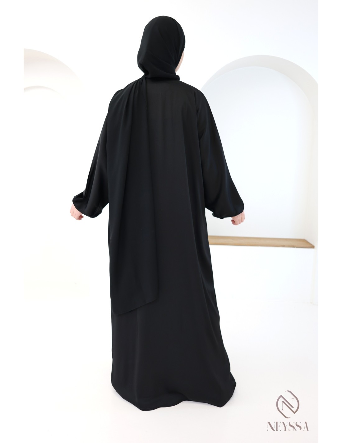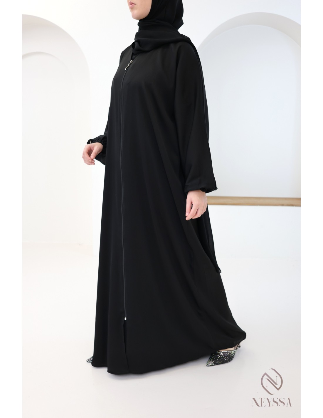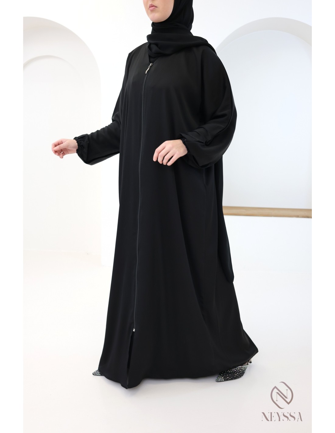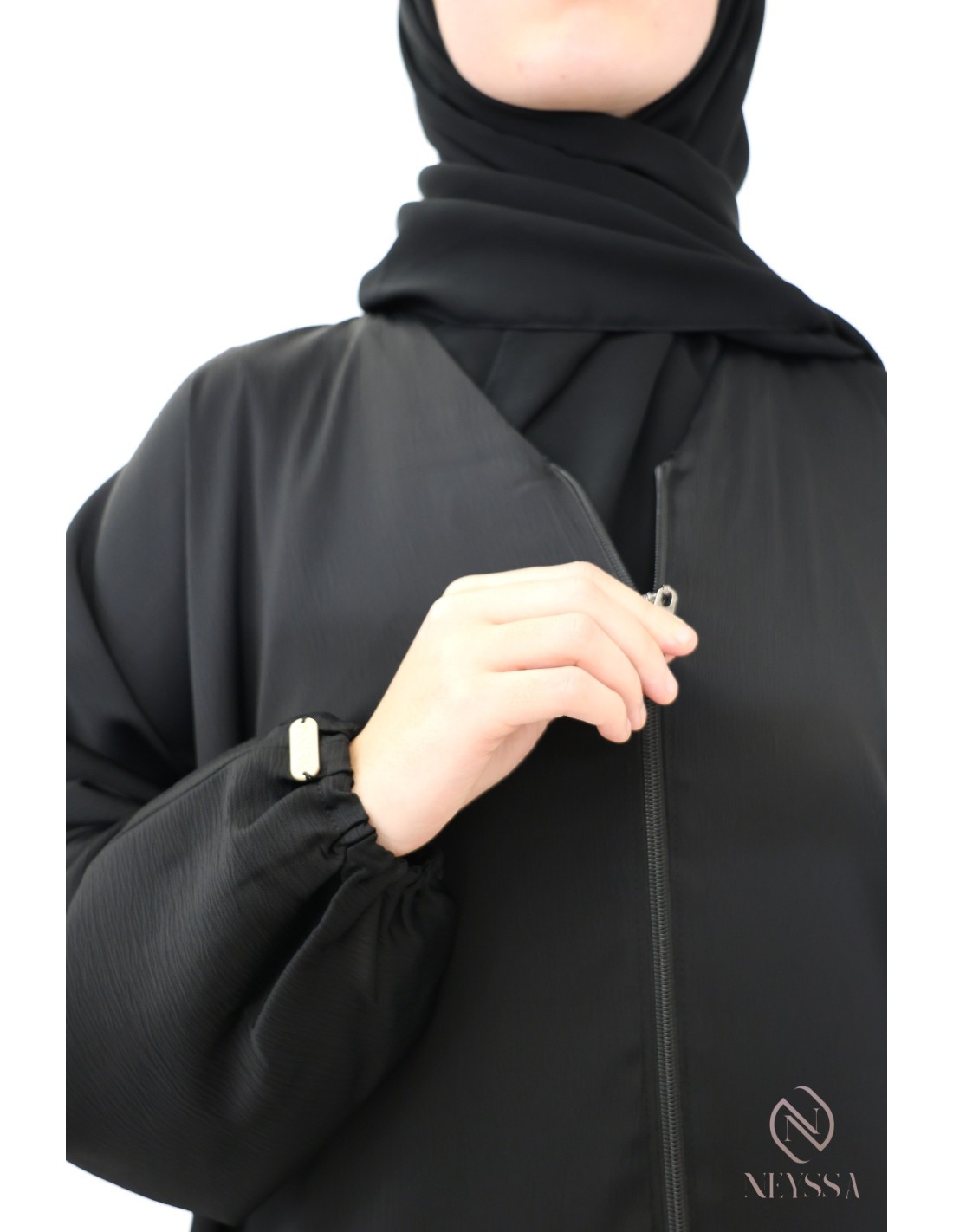 - Zipped abaya: this abaya can be worn open or closed (sold without the under-abaya).