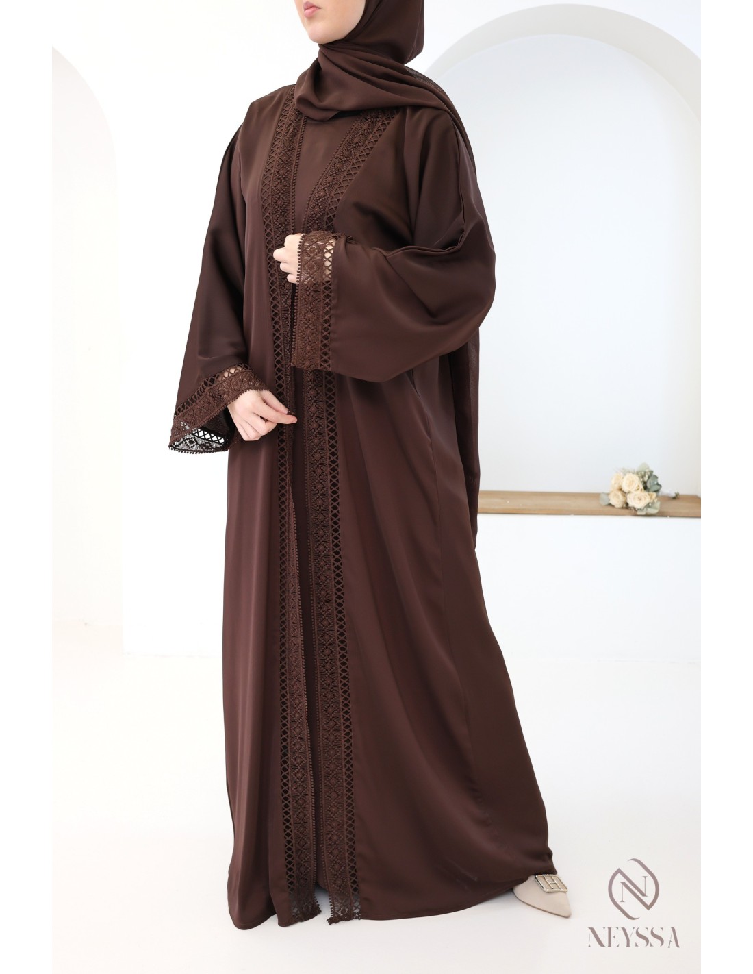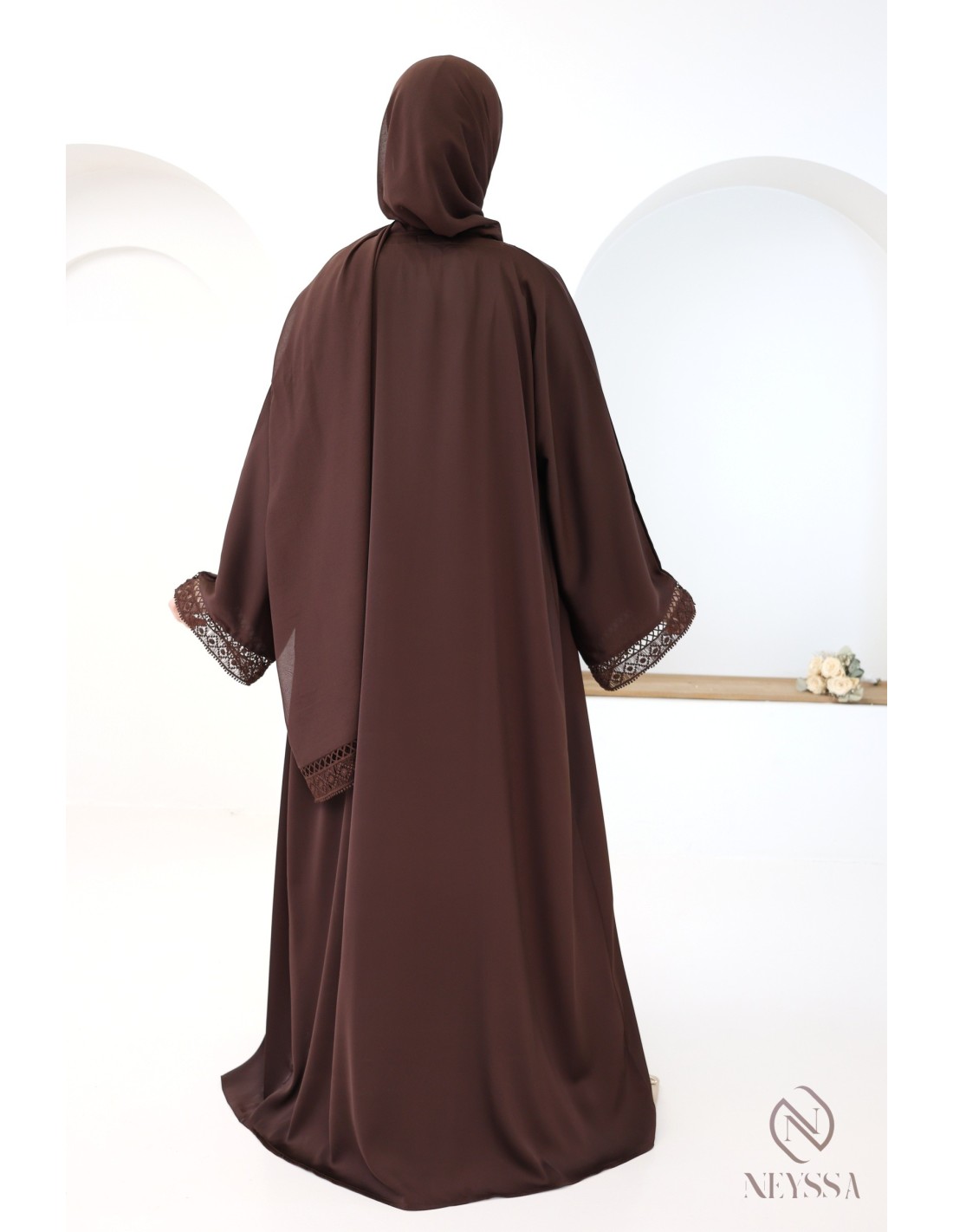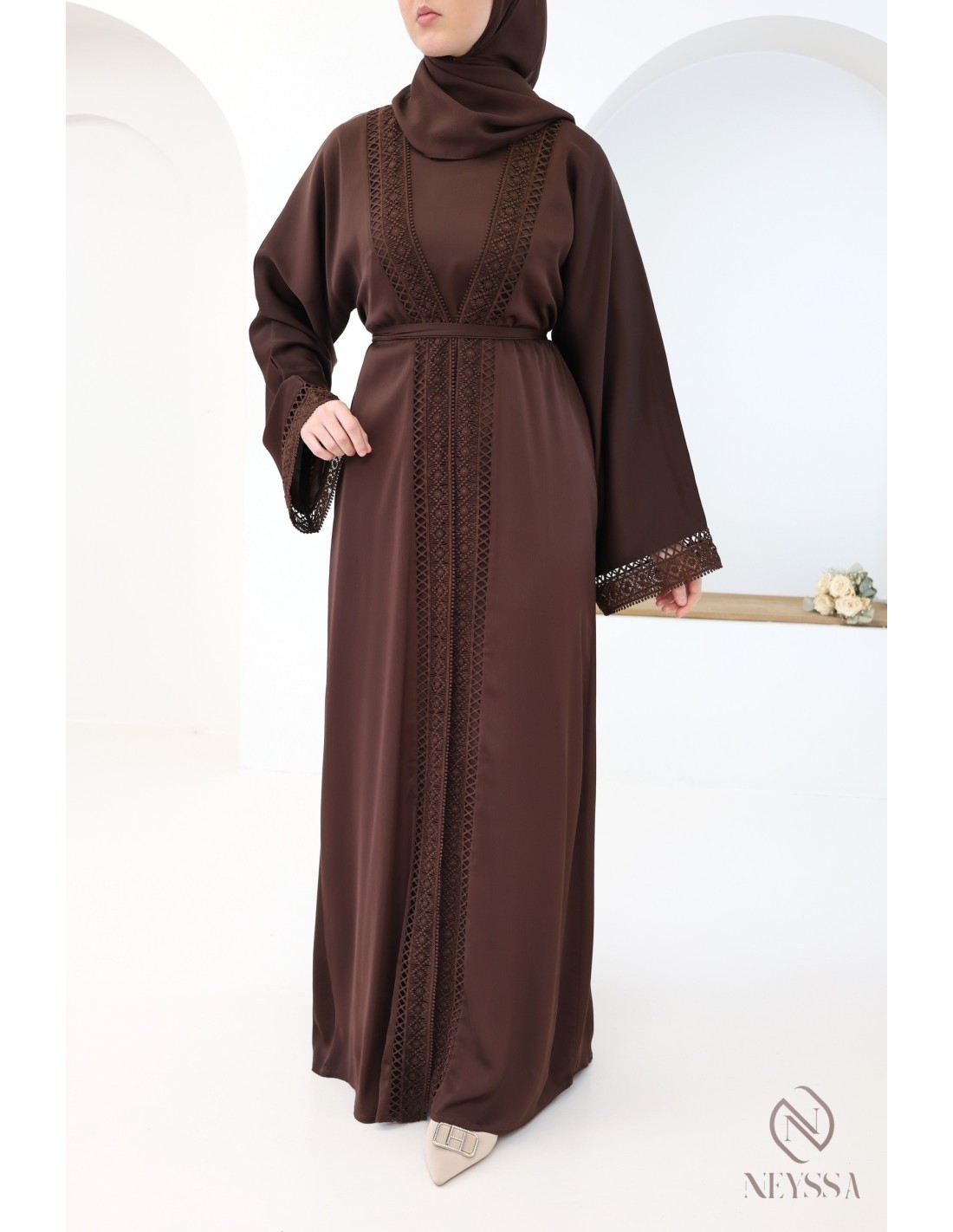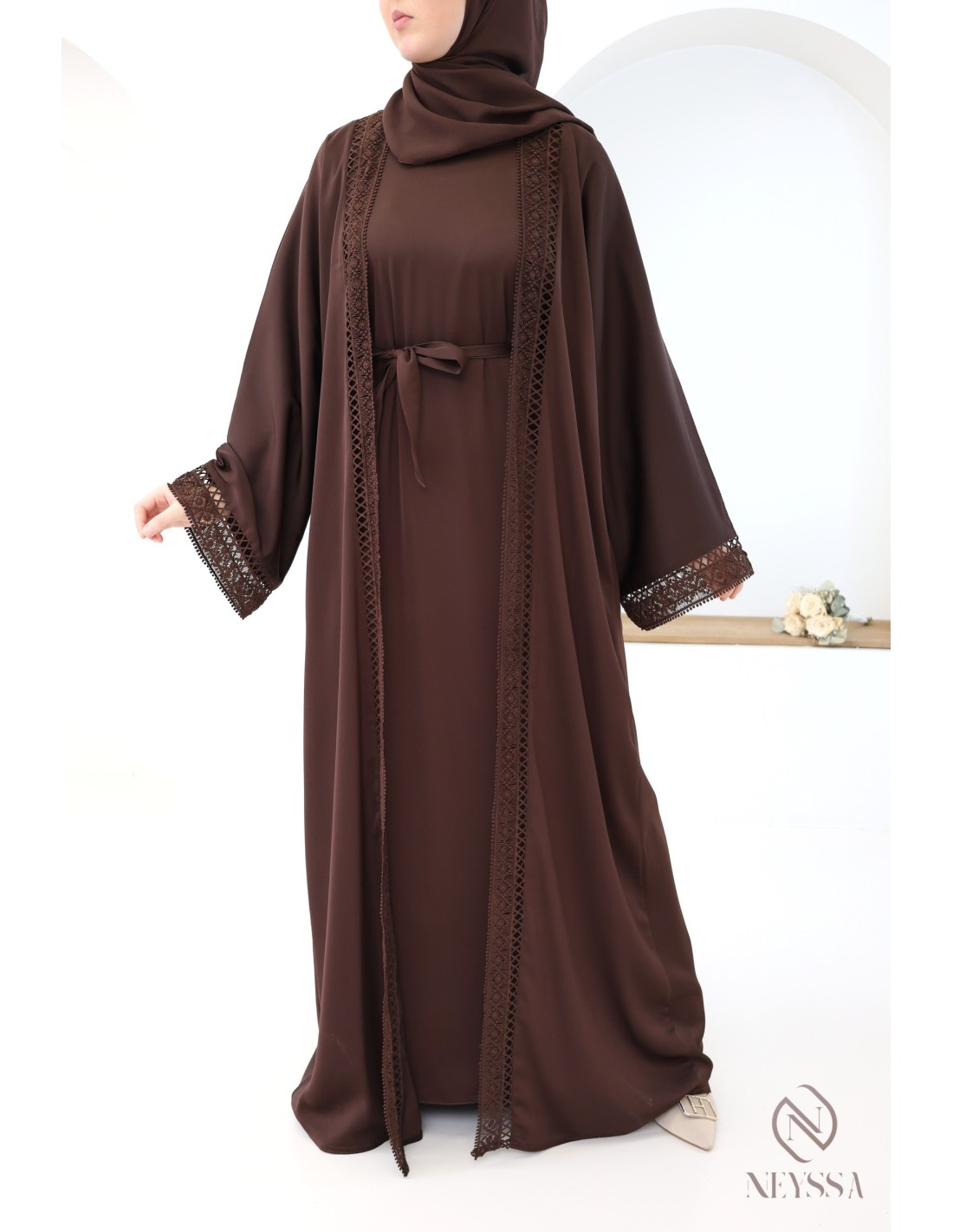 Brown lace 4-piece Dubai kimono abaya: a must-have for hijabis