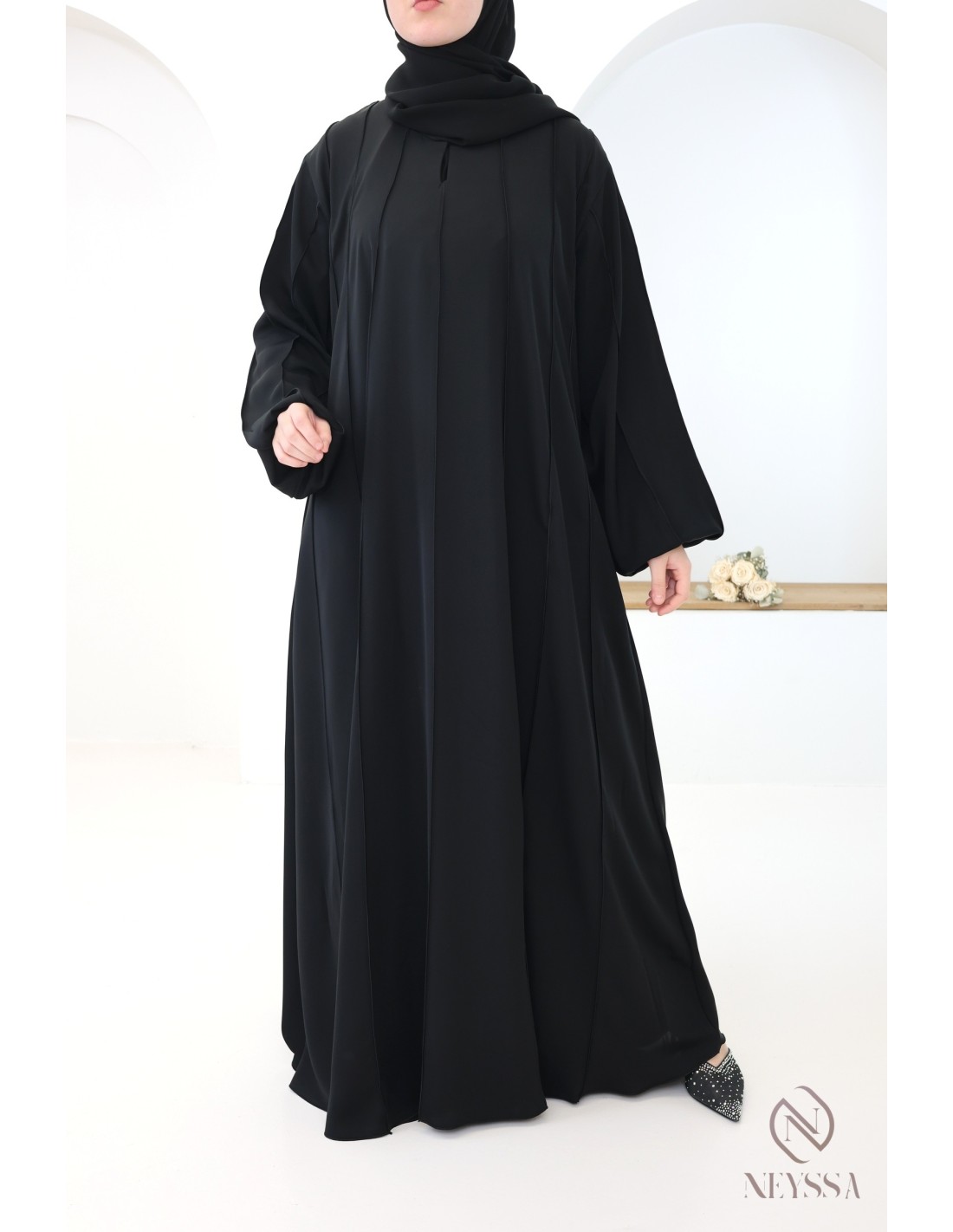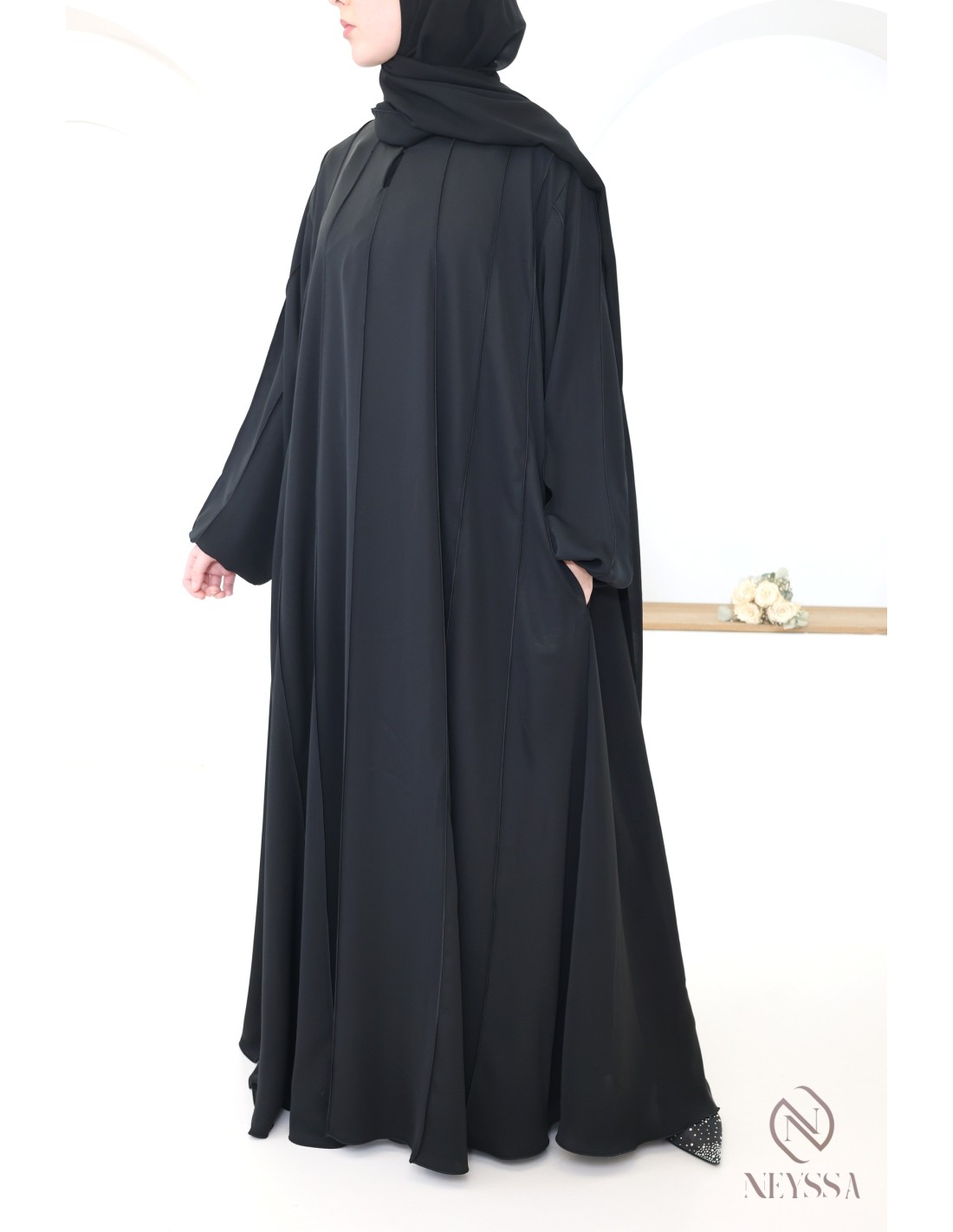 - Umbrella-cut long abaya