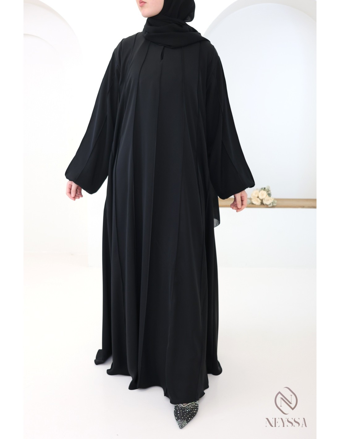 Discover the two-piece kimono abaya styles available at Neyssa :)