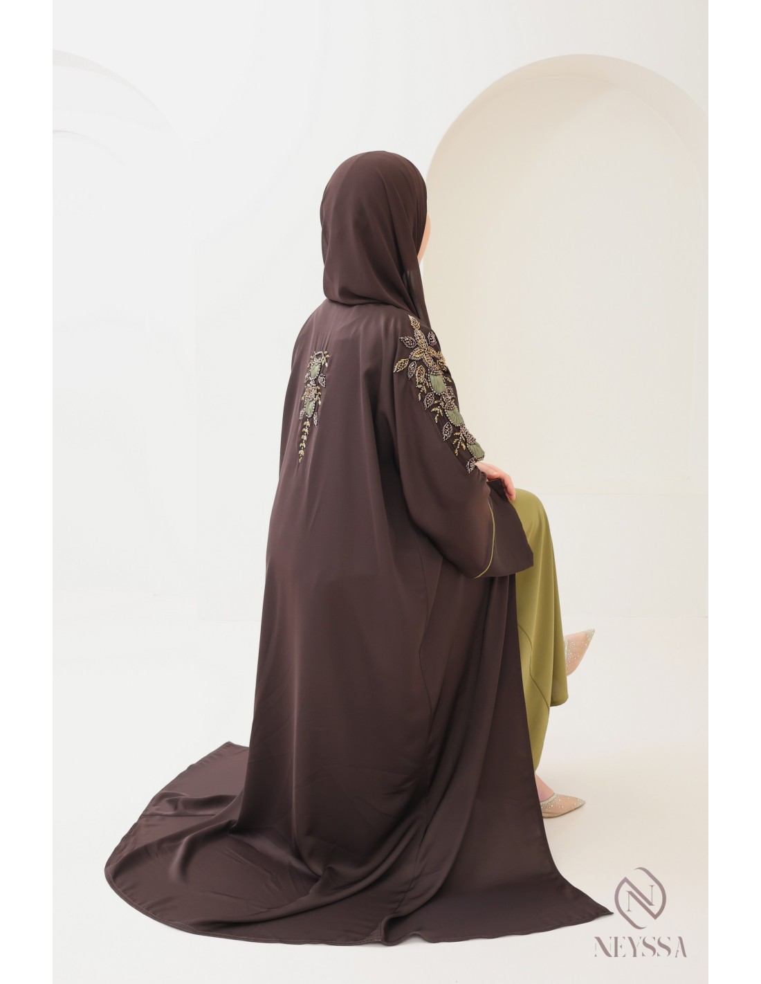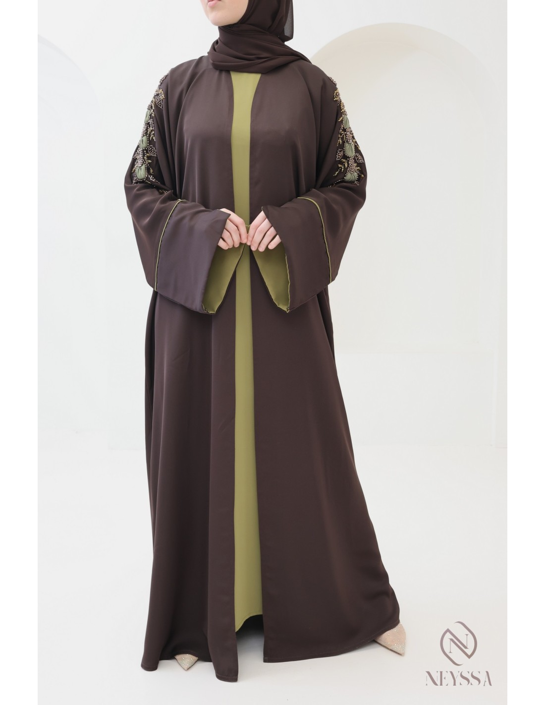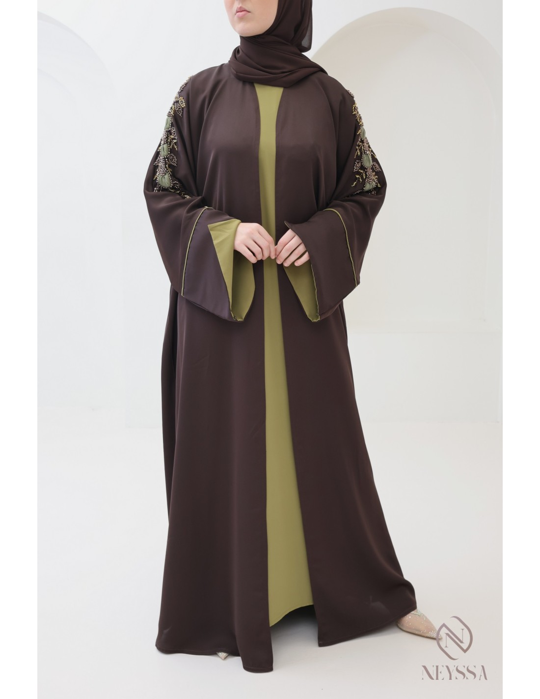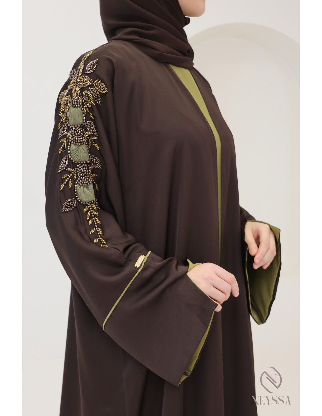 Luxury Dubai kimono abaya Noor Elixir Chocolate/khaki