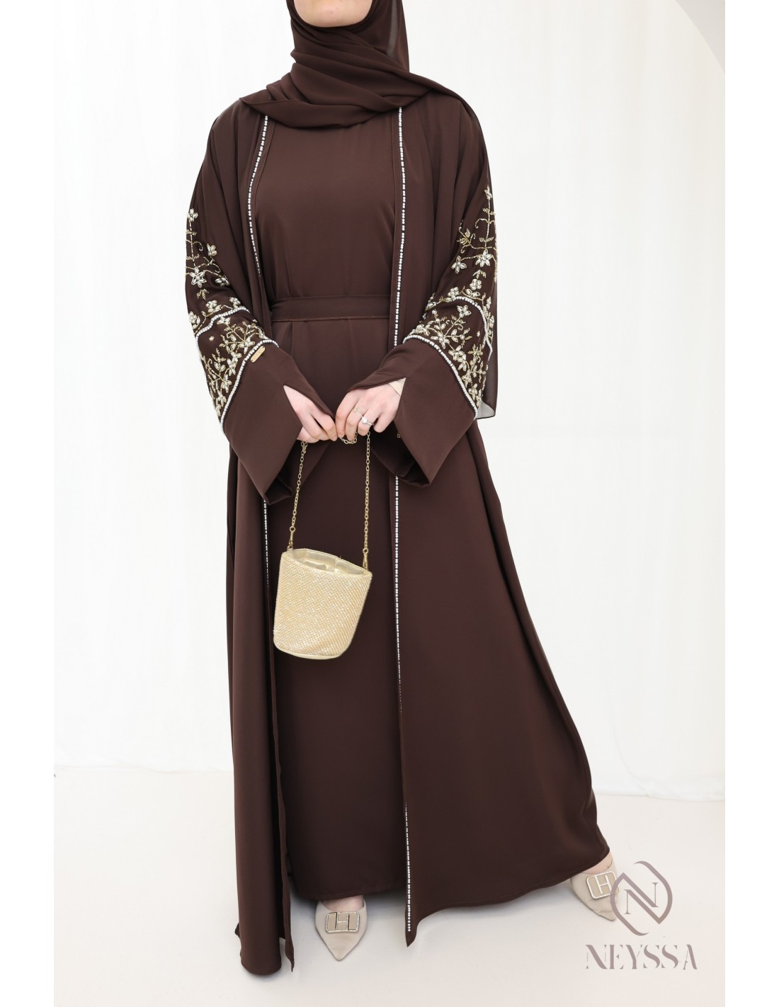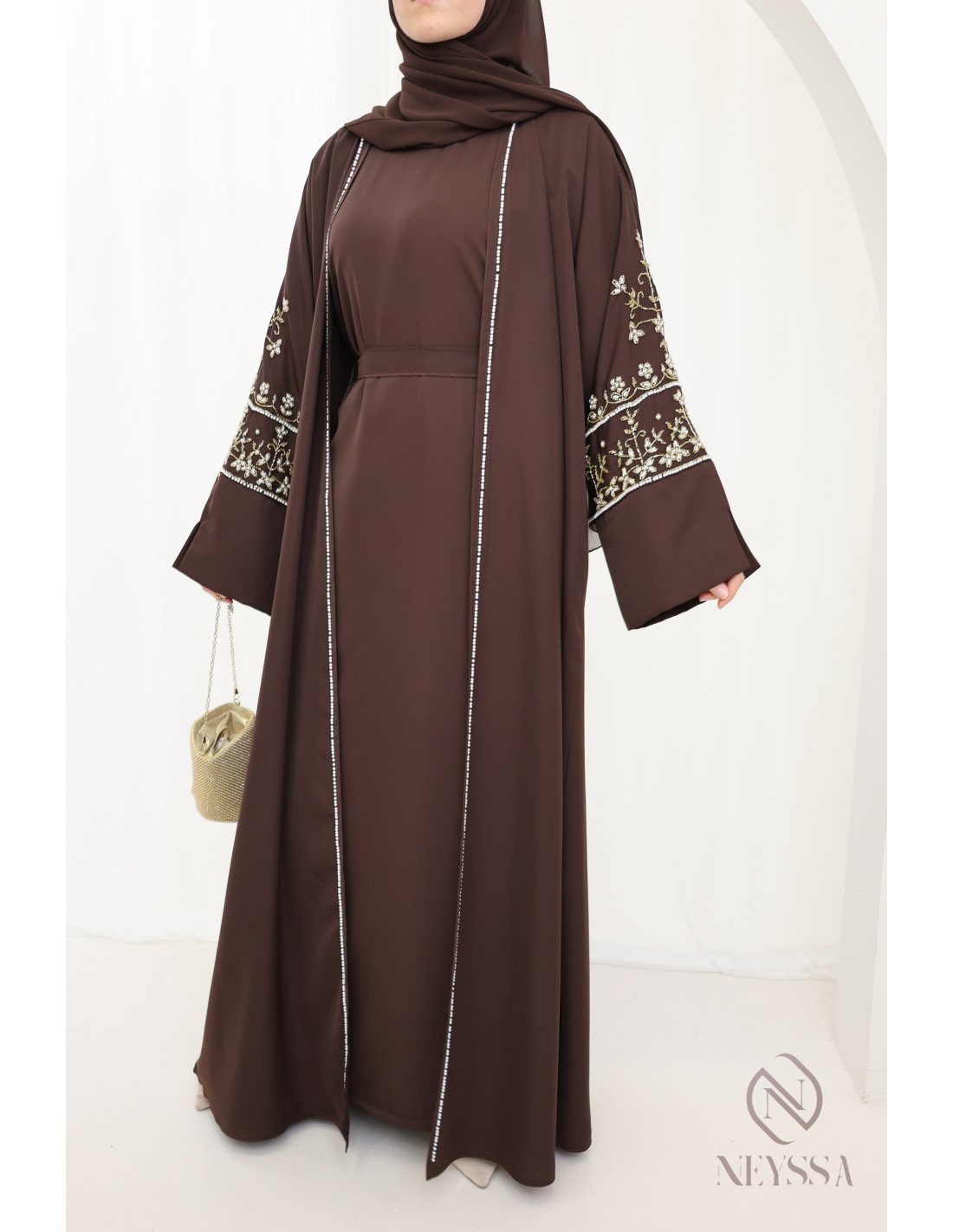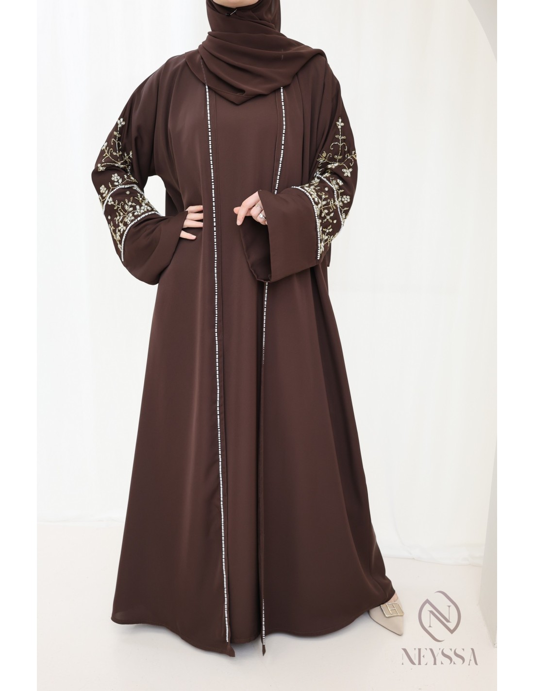 With this magnificent abaya outfit, you're sure to shine on the big day! Confection Neyssa represents a perfect marriage of elegance and sophistication. Carefully crafted in our workshops in Dubai, this exceptional quality abaya exudes incomparable charm.