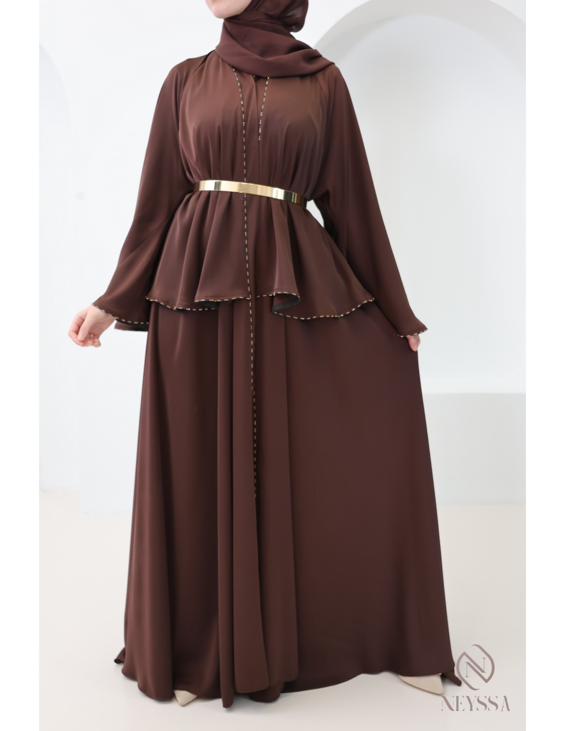 Dubai luxury flared kimono abaya Al Muntaza Chocolate