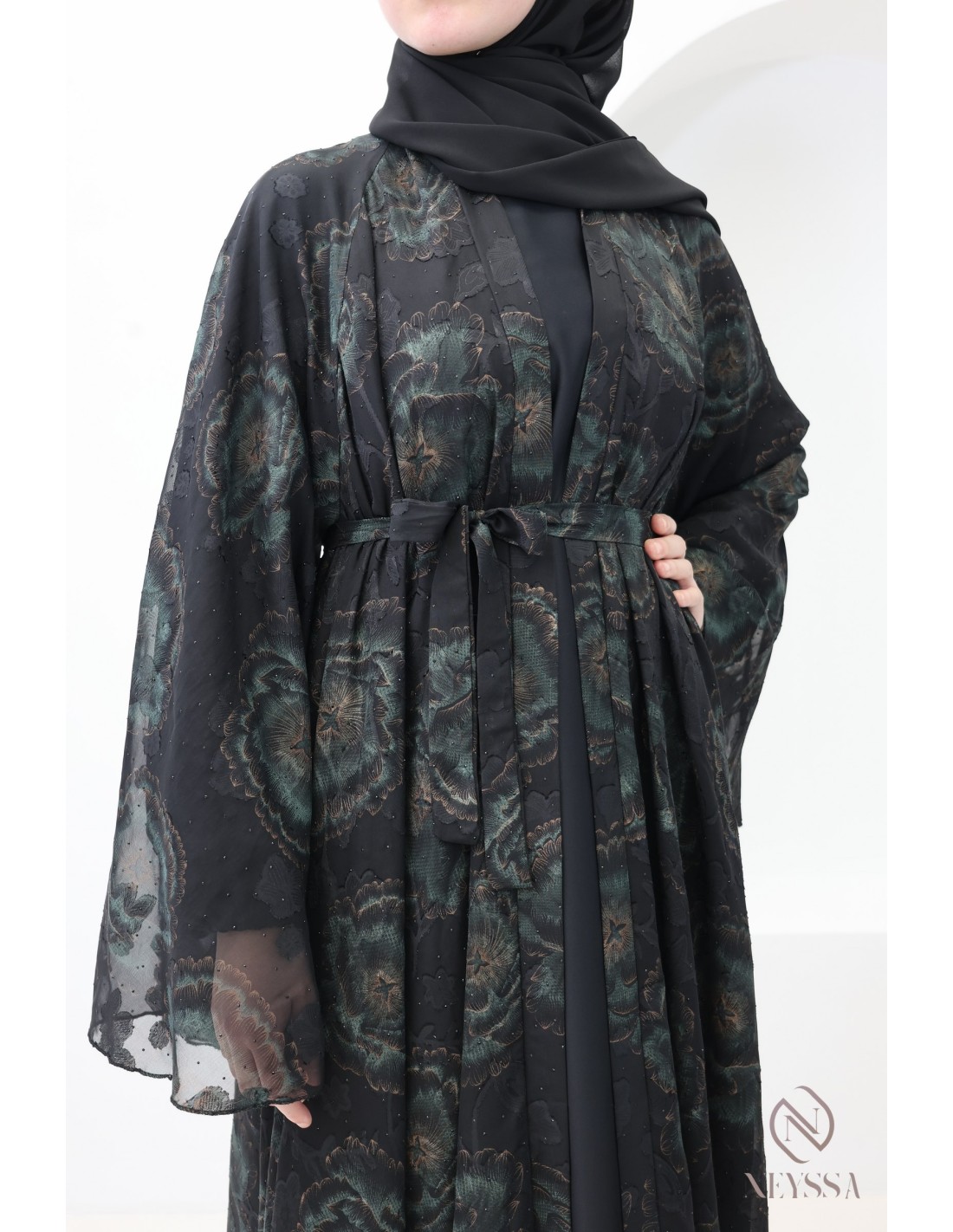 • Chiffon hijab: To complete the look, a matching chiffon hijab is included with this abaya for perfect coordination (may vary depending on availability).
