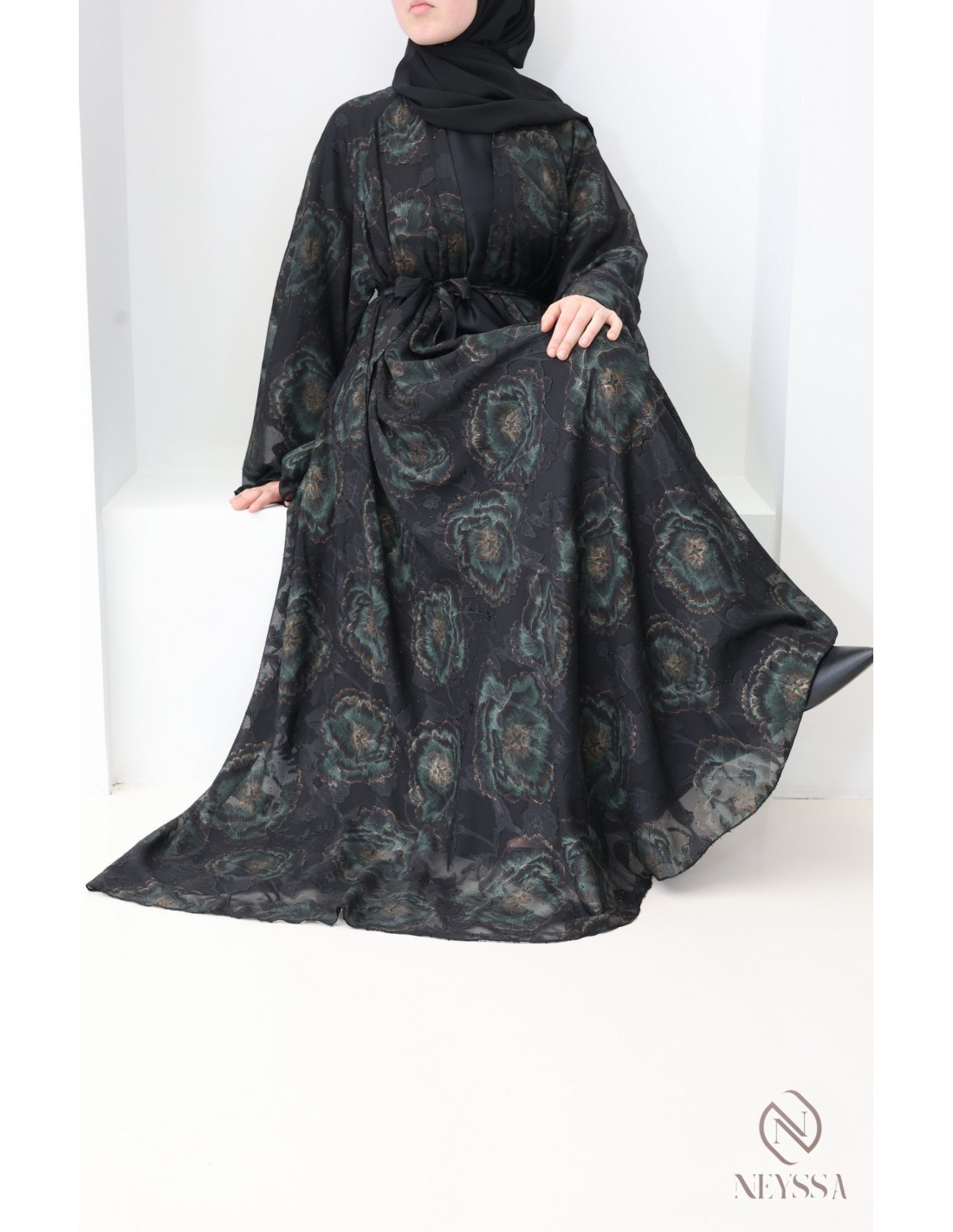 With this magnificent abaya outfit, you're sure to shine on the big day! Confection Neyssa represents a perfect marriage of elegance and sophistication. Carefully crafted in our workshops in Dubai, this exceptional quality abaya exudes incomparable charm.