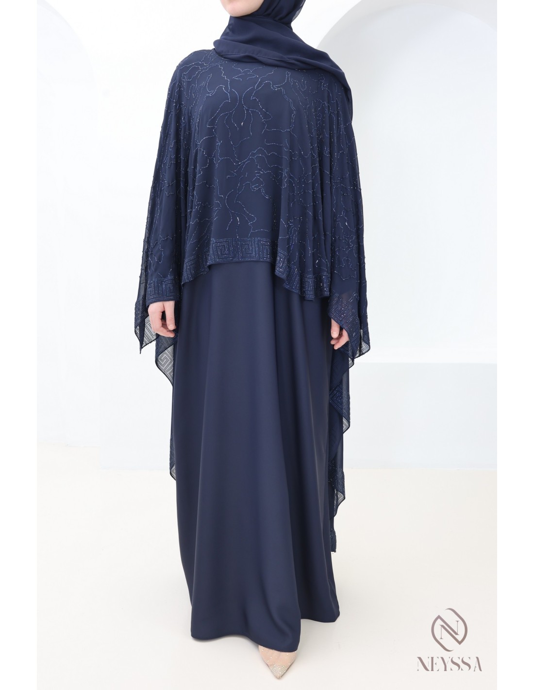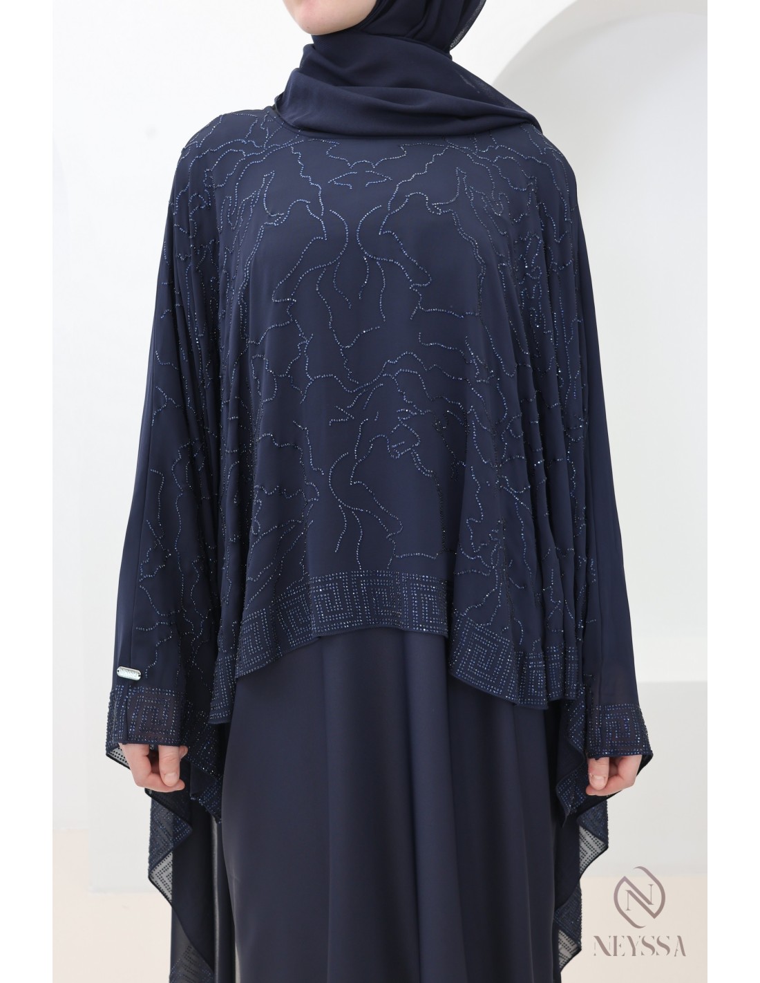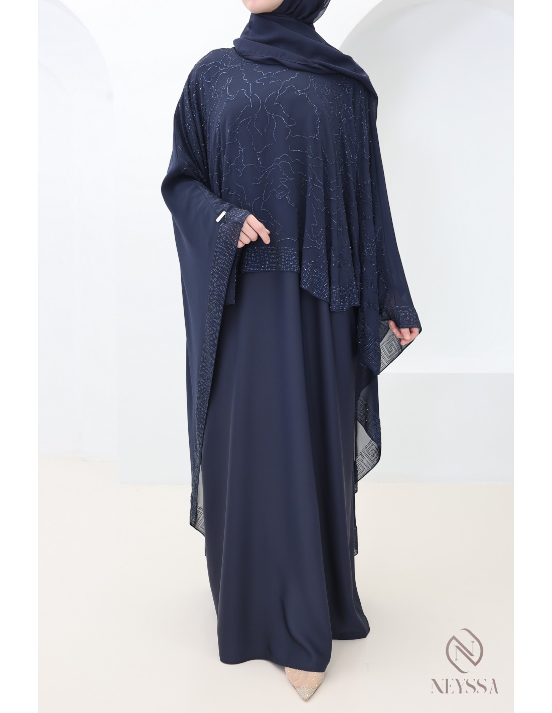 Dubai Abaya with Midnight Blue Chiffon Cape