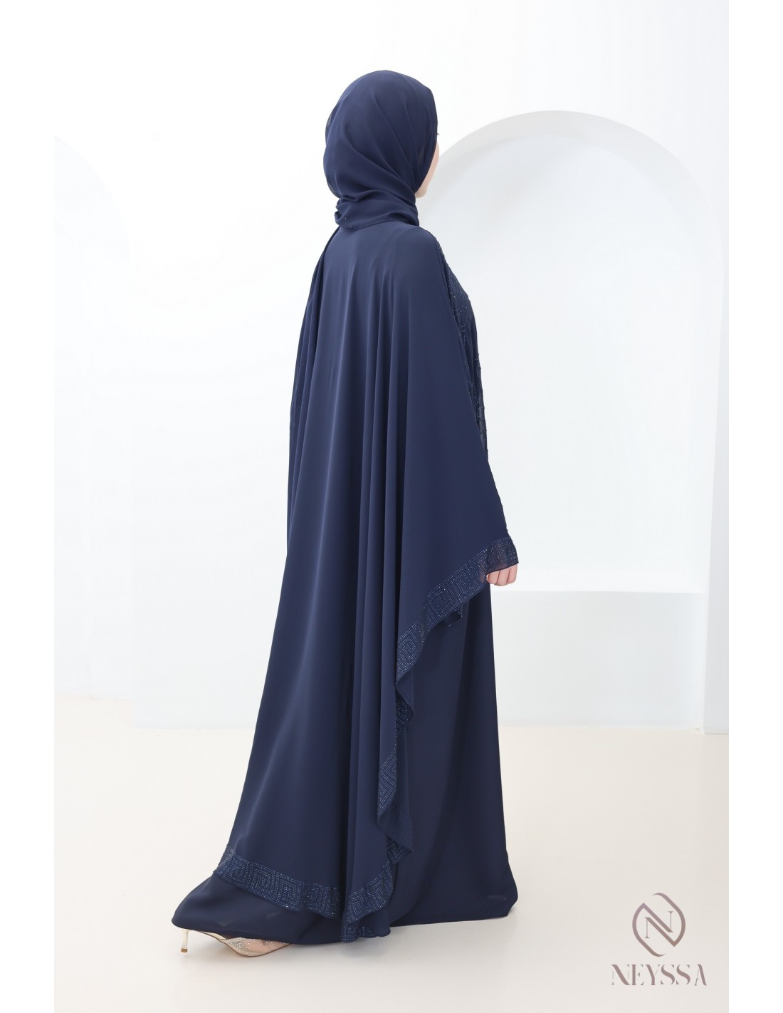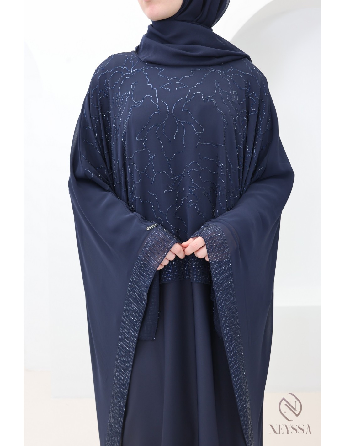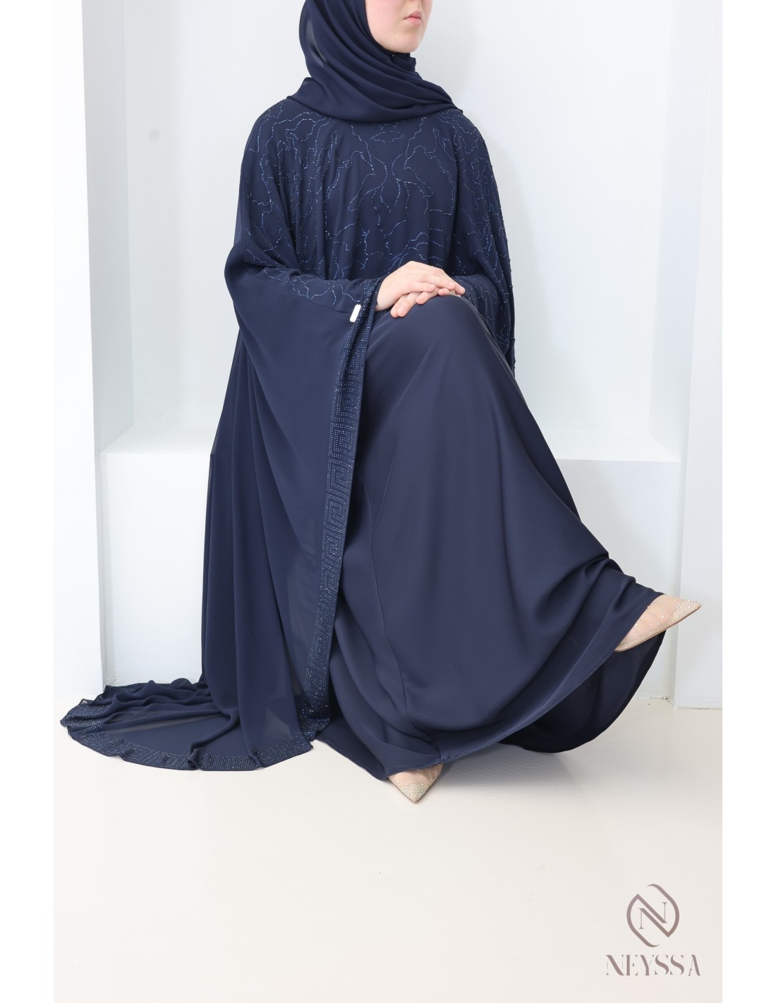Luxury Dubai Abaya with Rajayah Midnight Blue Rhinestones