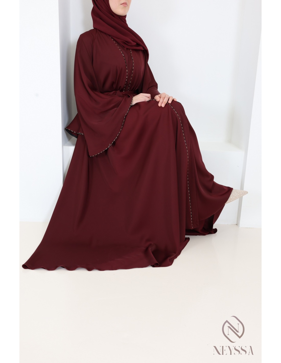 Al Muntaza Burgundy Luxury Flared Dubai Kimono Abaya