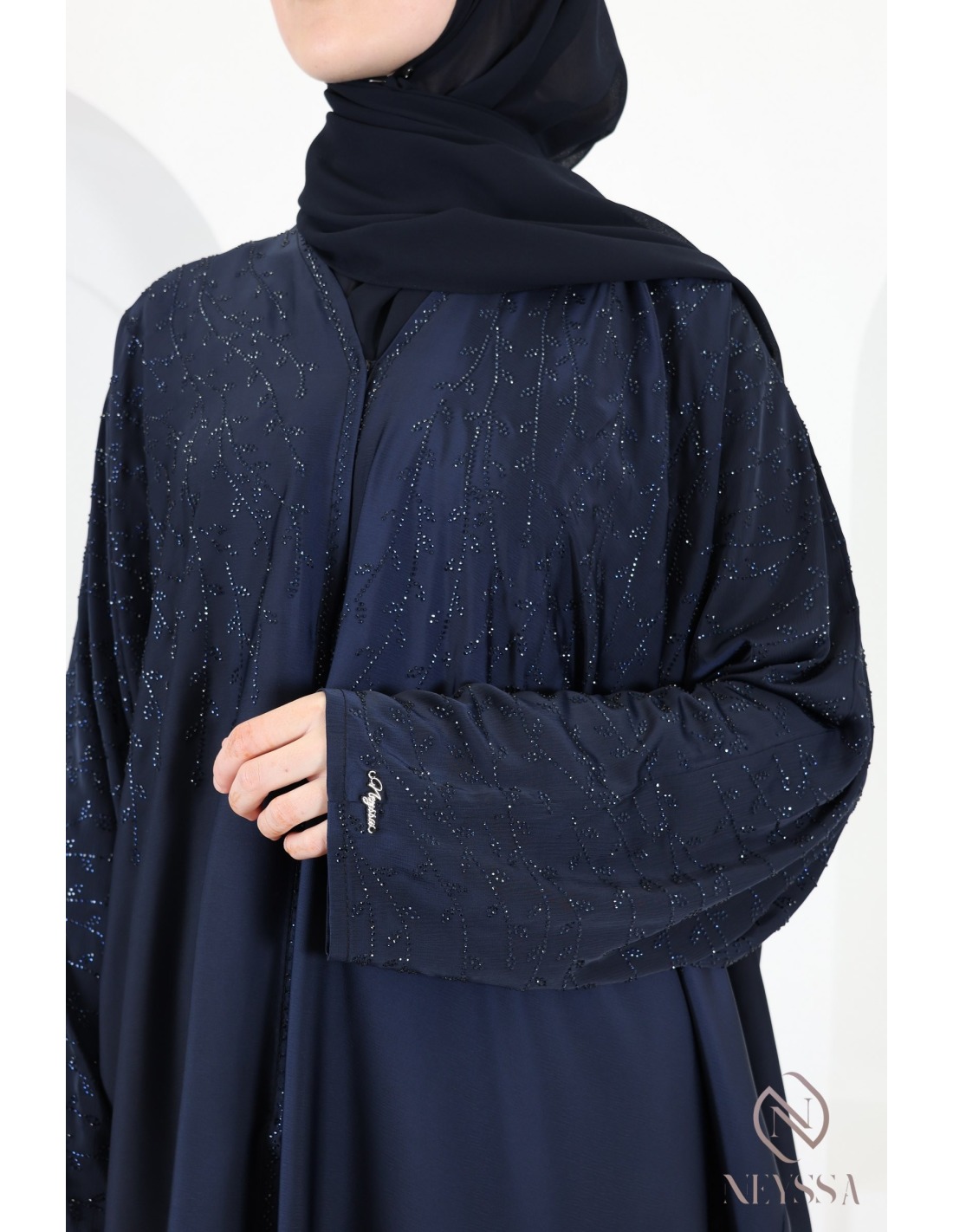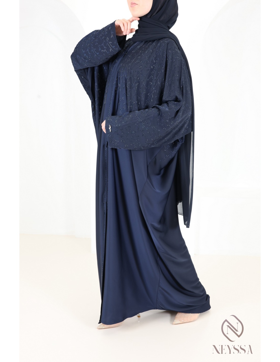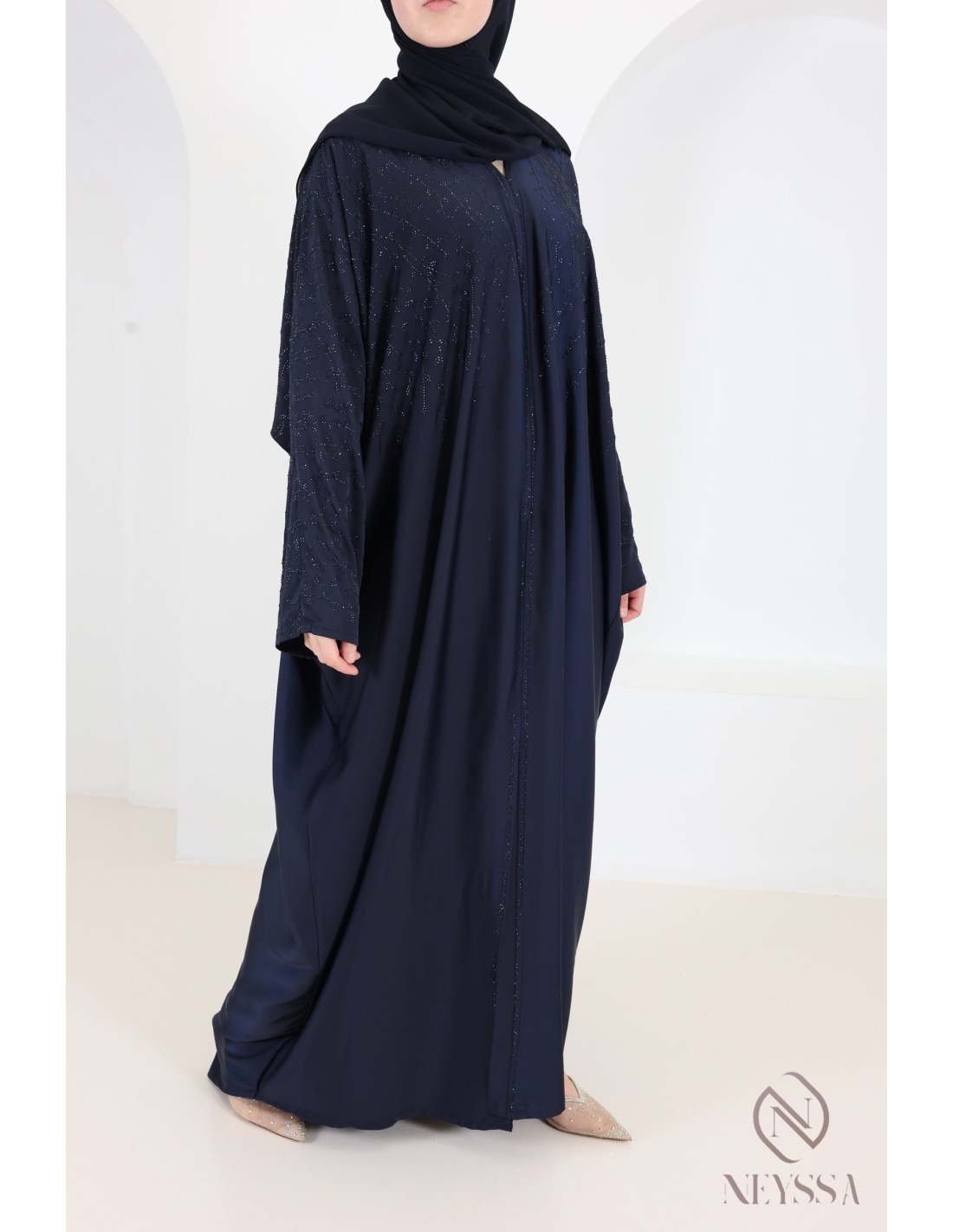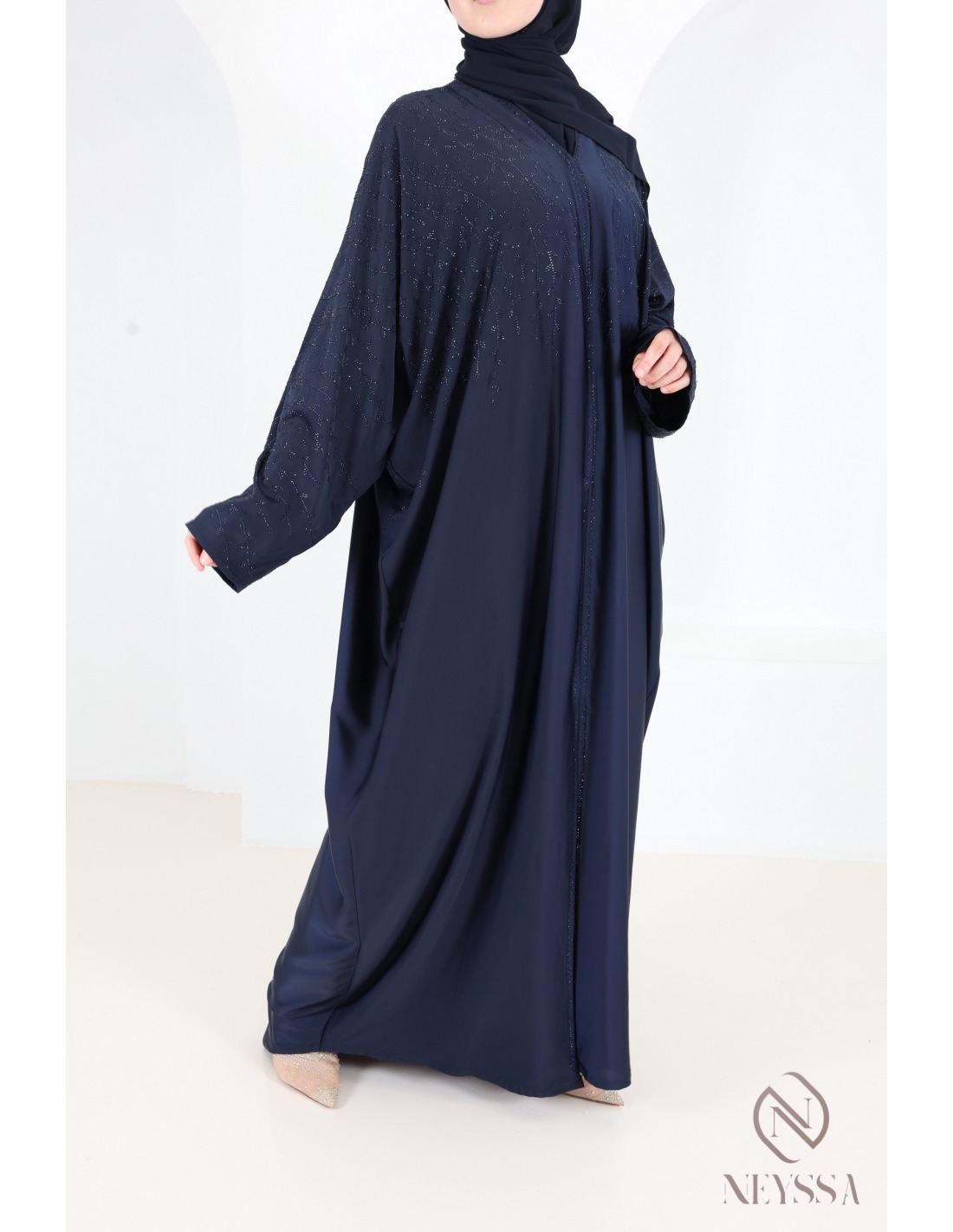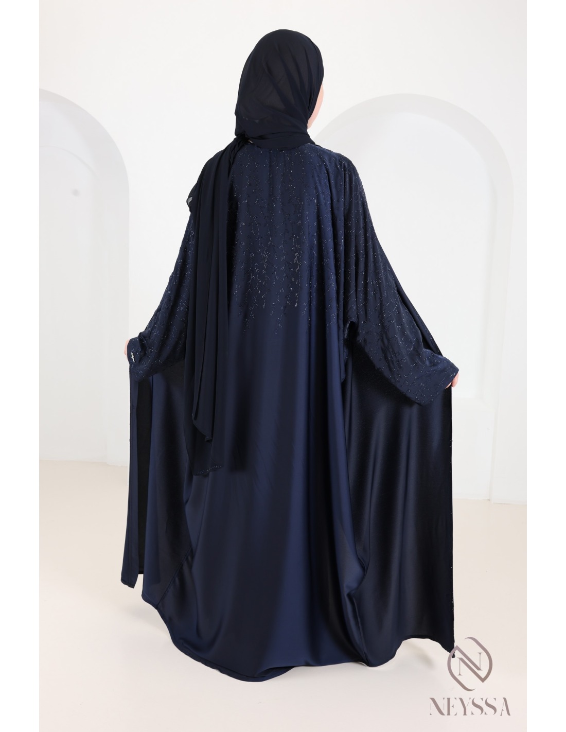 Dubai 2-Piece Kimono-Style Butterfly Cut Abaya with Midnight Blue Rhinestones
