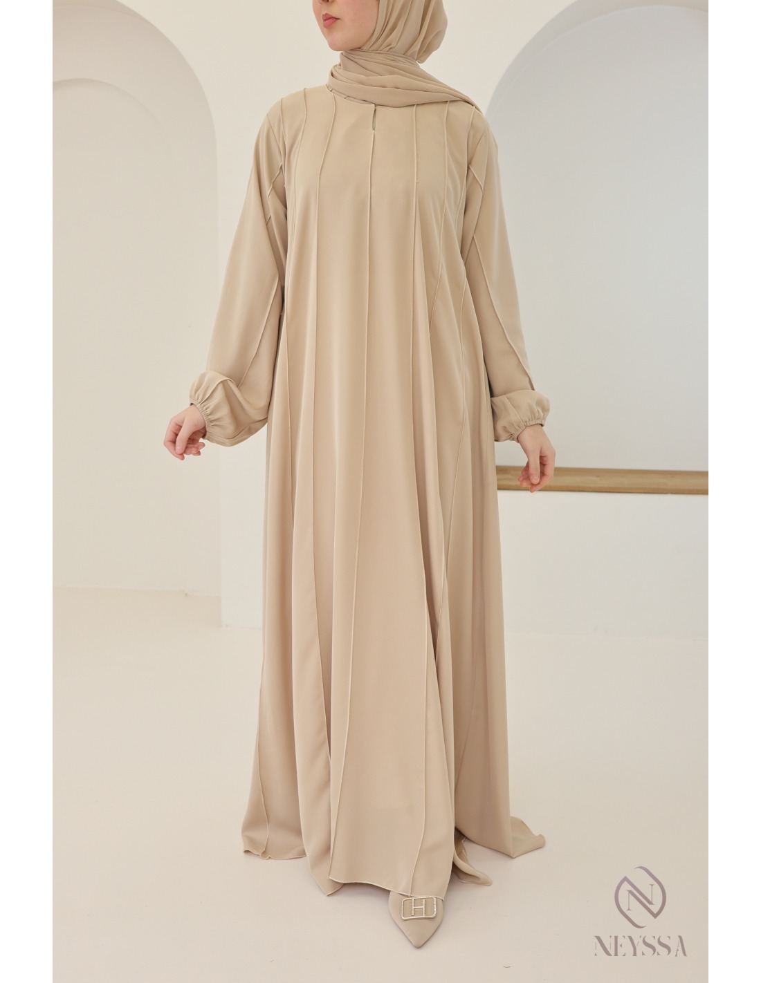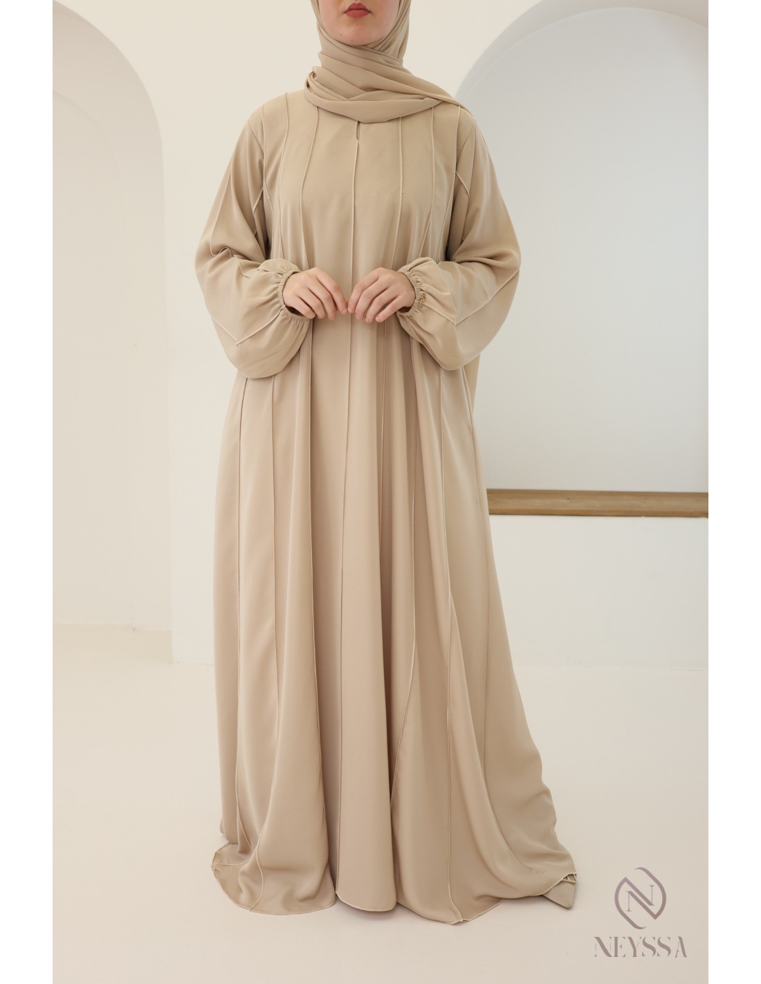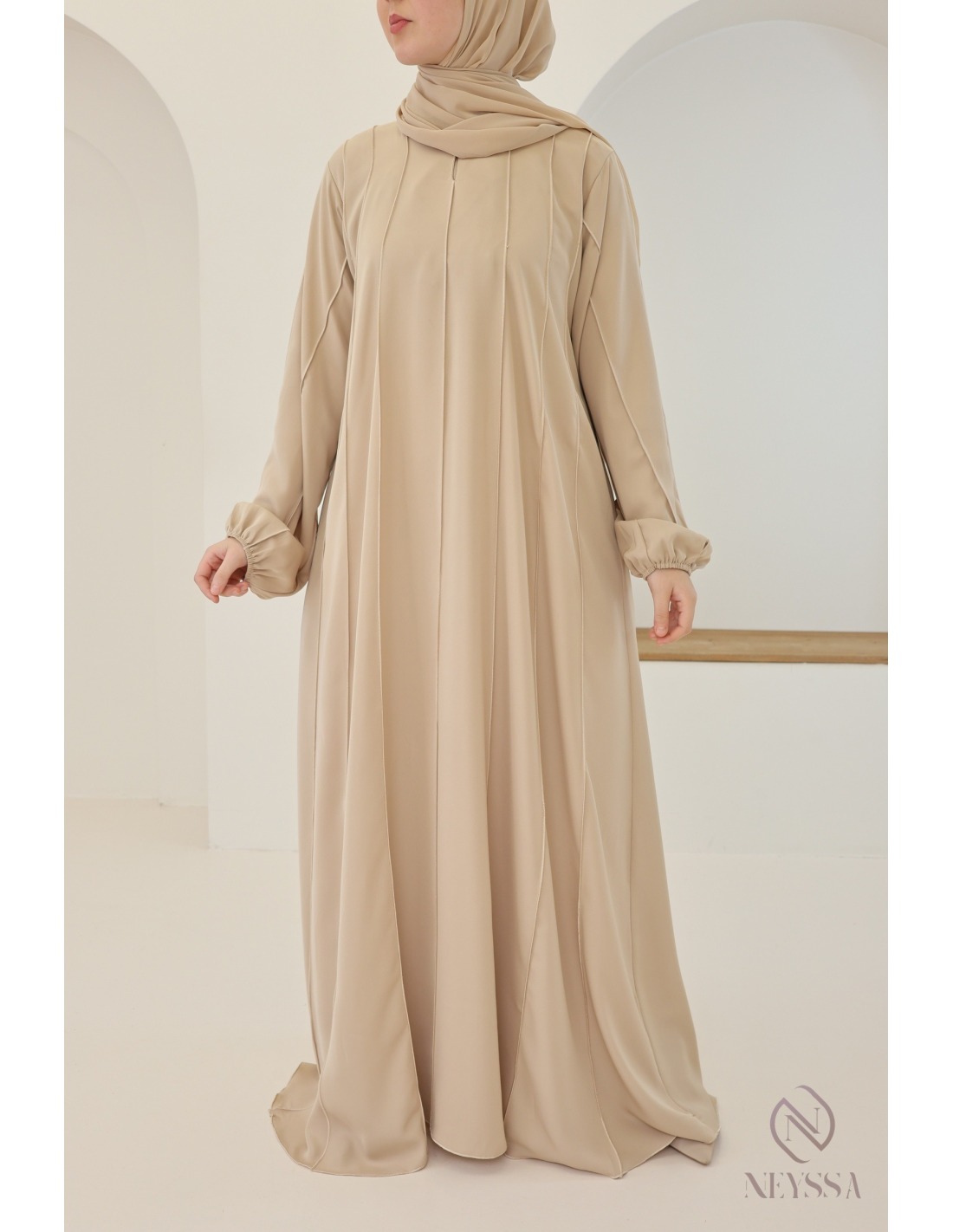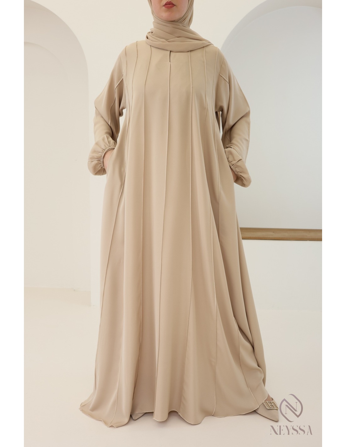Beige Dubai umbrella-cut abaya with topstitching for veiled women