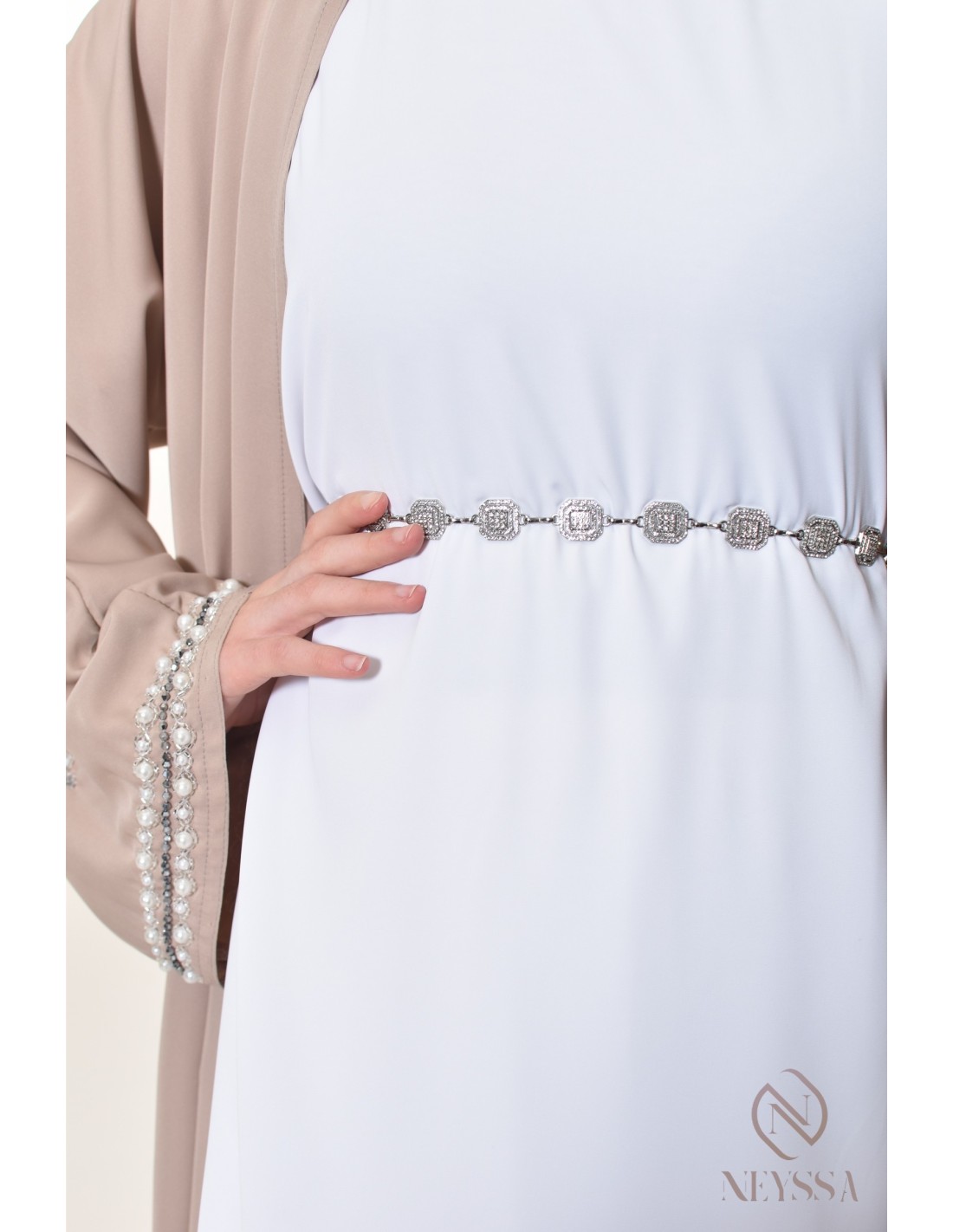 From our modern hijabi ready-to-wear collection, we've selected this fully adjustable rhinestone belt with its chain system at the back, very comfortable to wear.