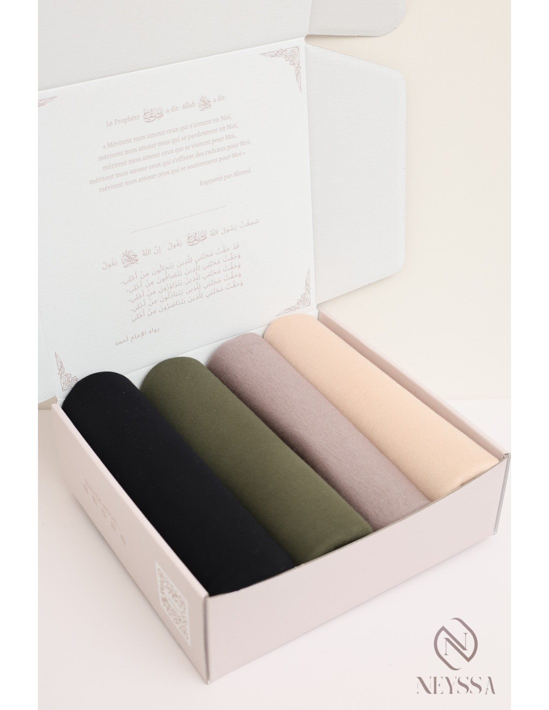 Neyssa offers you this nice hijab box to offer of 4 crumpled cotton hijabs Crinckles that we have carefully prepared.