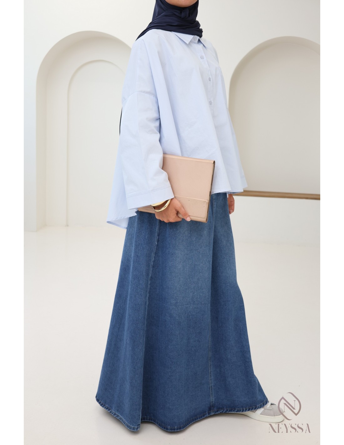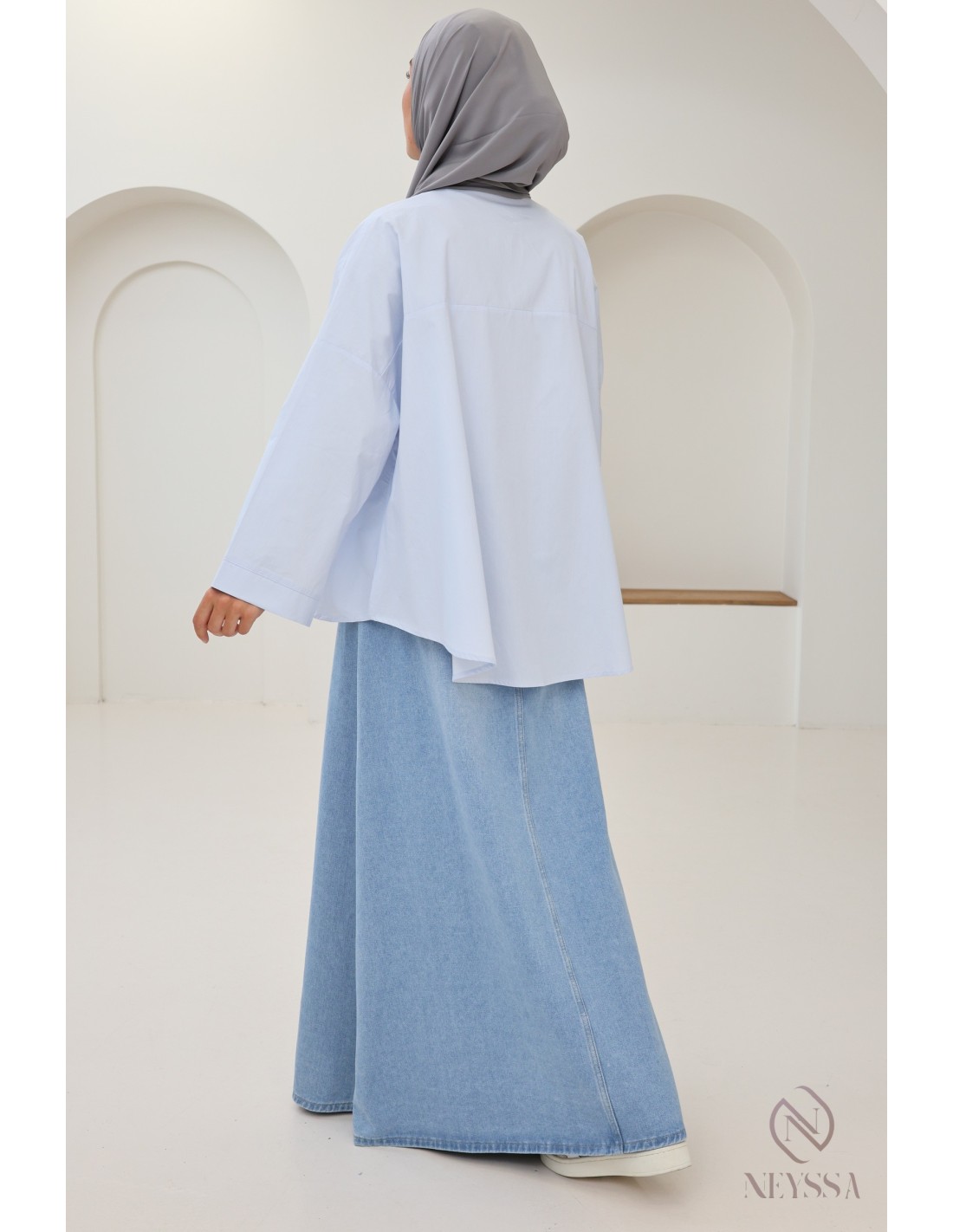 Is your wardrobe full of summer skirts, but you're missing some cute modest tops to complete your outfits? At Neyssa, we offer hijabi women's clothing that is full of gems, including this gorgeous oversized shirt.