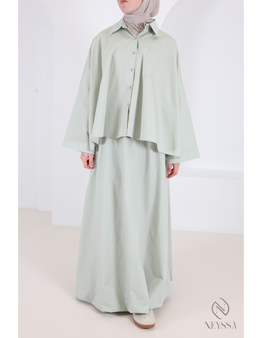 Is your wardrobe full of summer skirts, but you're missing some cute modest tops to complete your outfits? At Neyssa, we offer hijabi women's clothing that is full of gems, including this gorgeous oversized shirt.