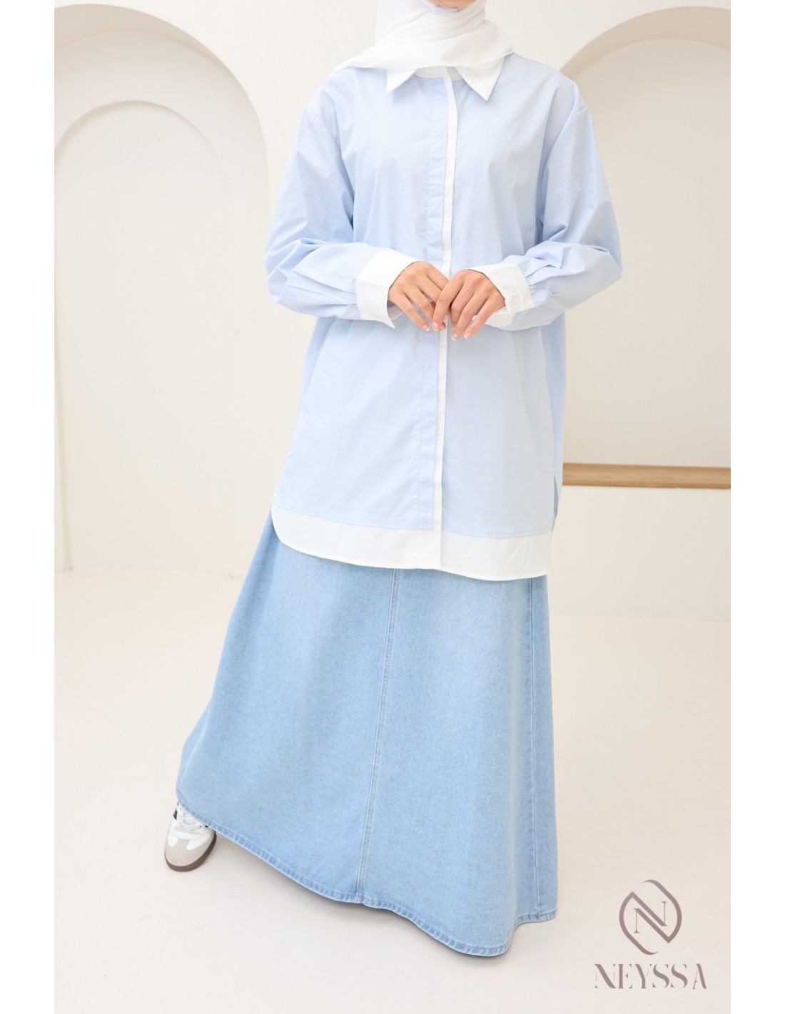 Mid-length Two-Tone Button-Down Shirt with a Loose Fit for Veiled Women : An Essential Item