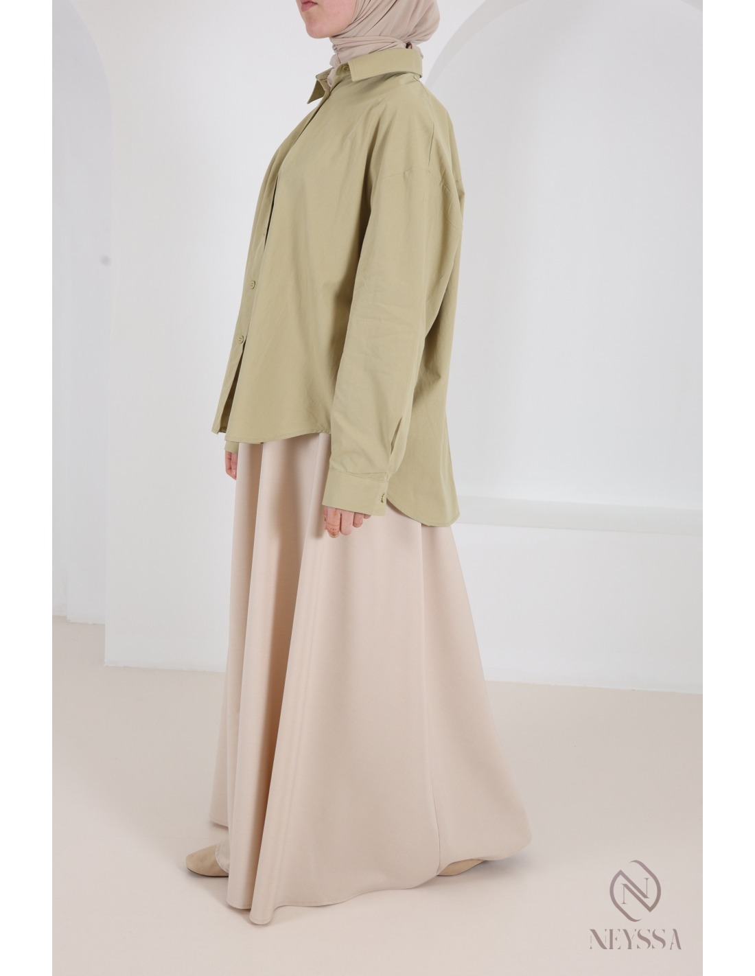 Discover our long skirts for Muslim women that will go perfectly with this style of shirt!