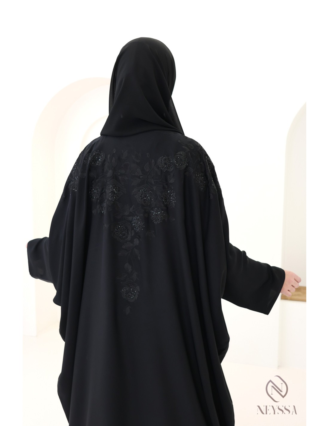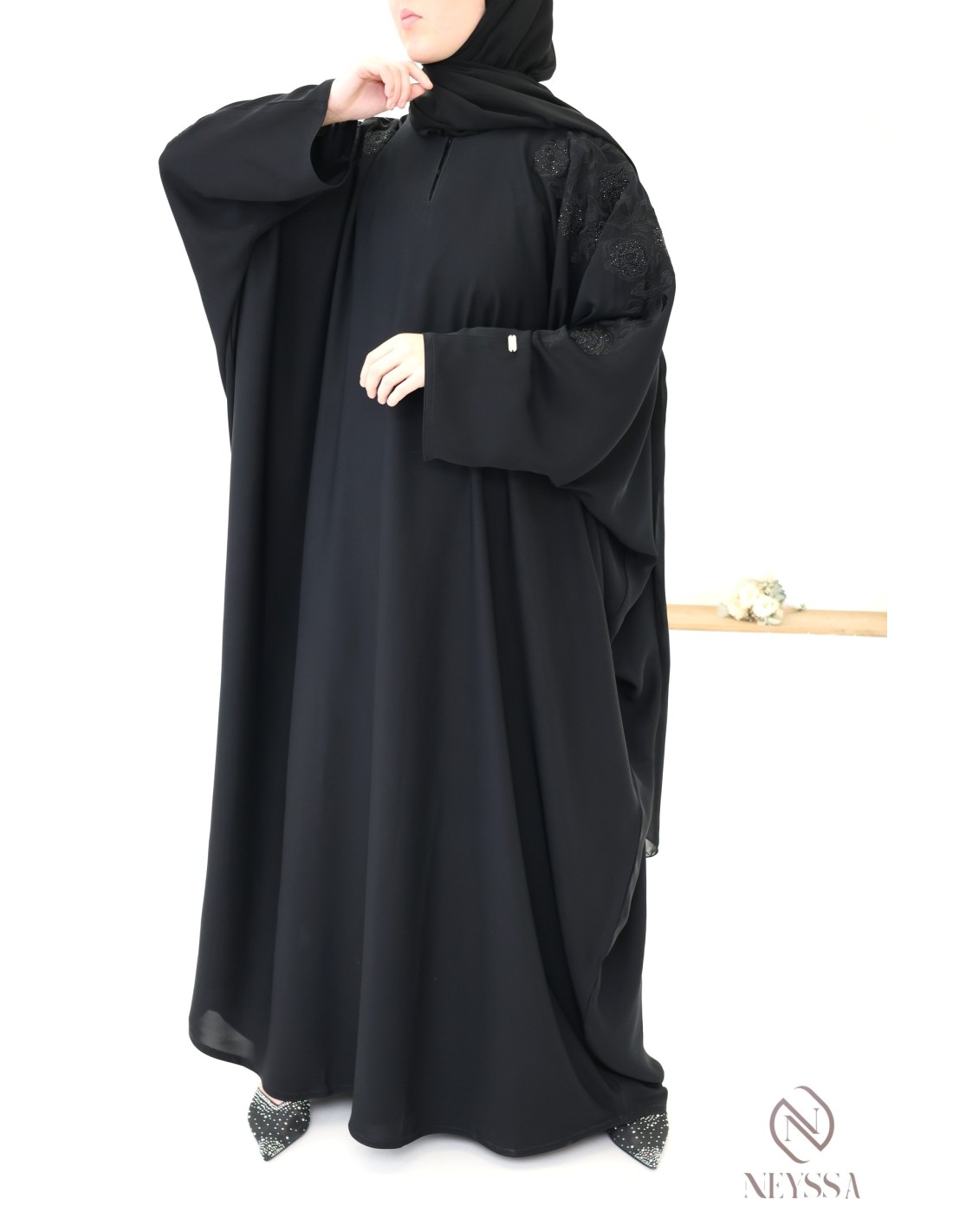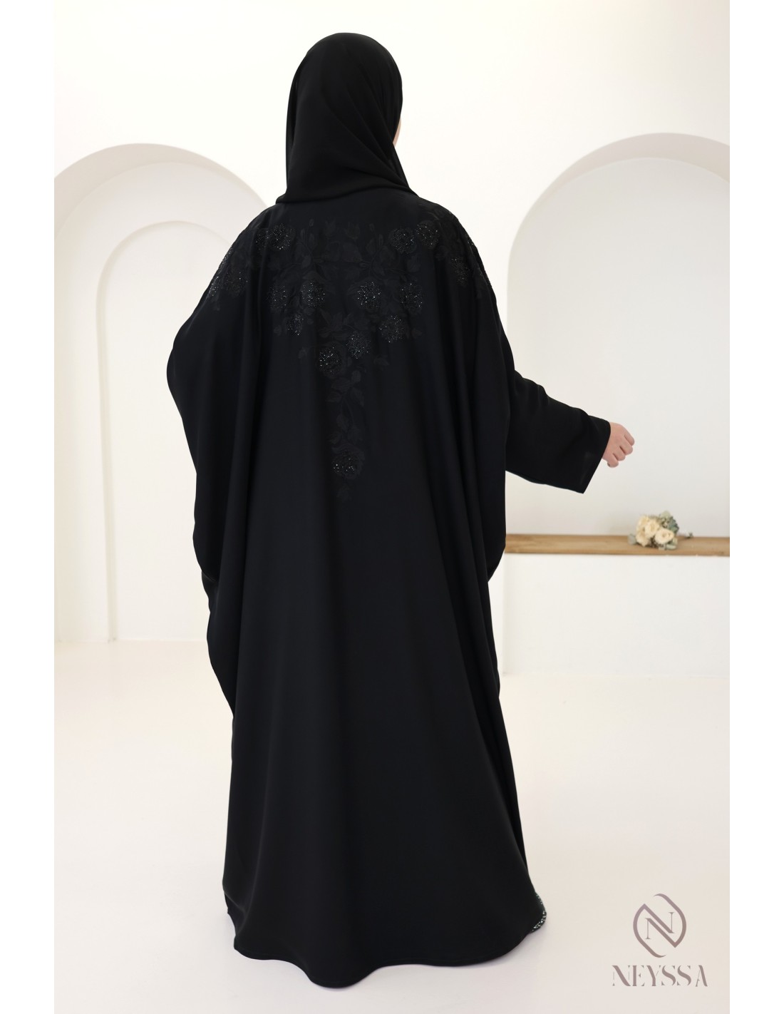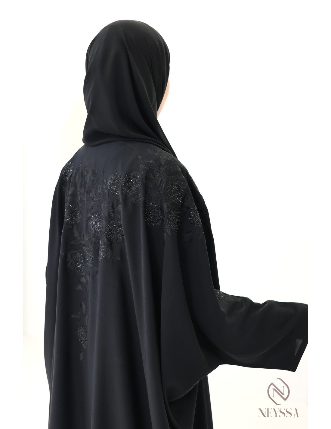 - Embroidery with rhinestones: delicately hand-sewn floral embroidery adorns the abaya and sleeves! Bringing a modern and trendy style.