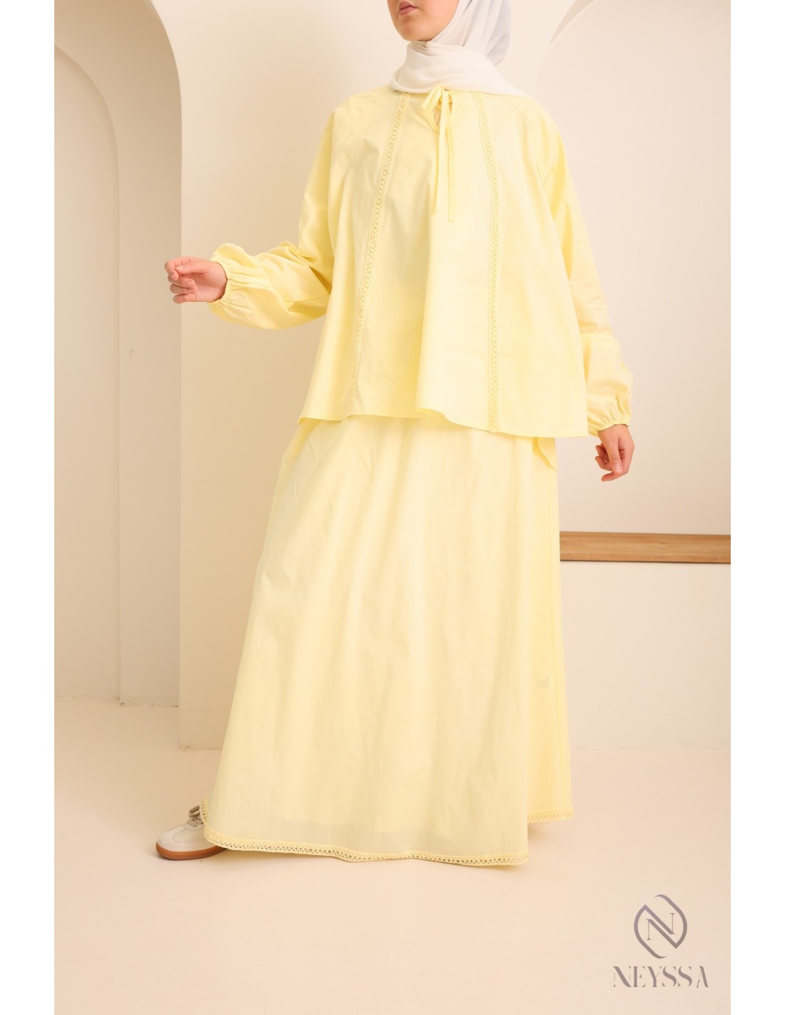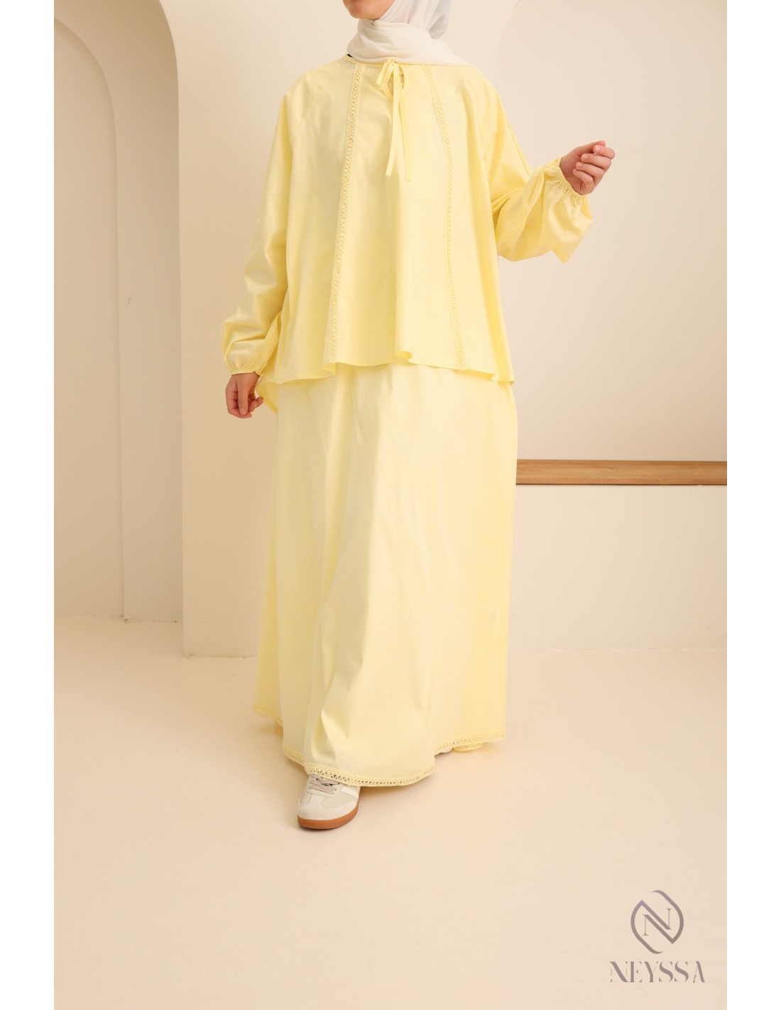 2-piece cotton set with blouse + long flared skirt for modern hijabi women