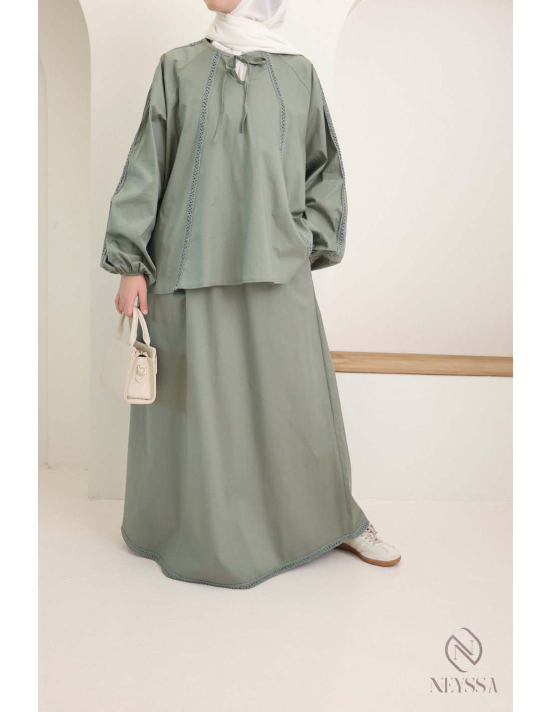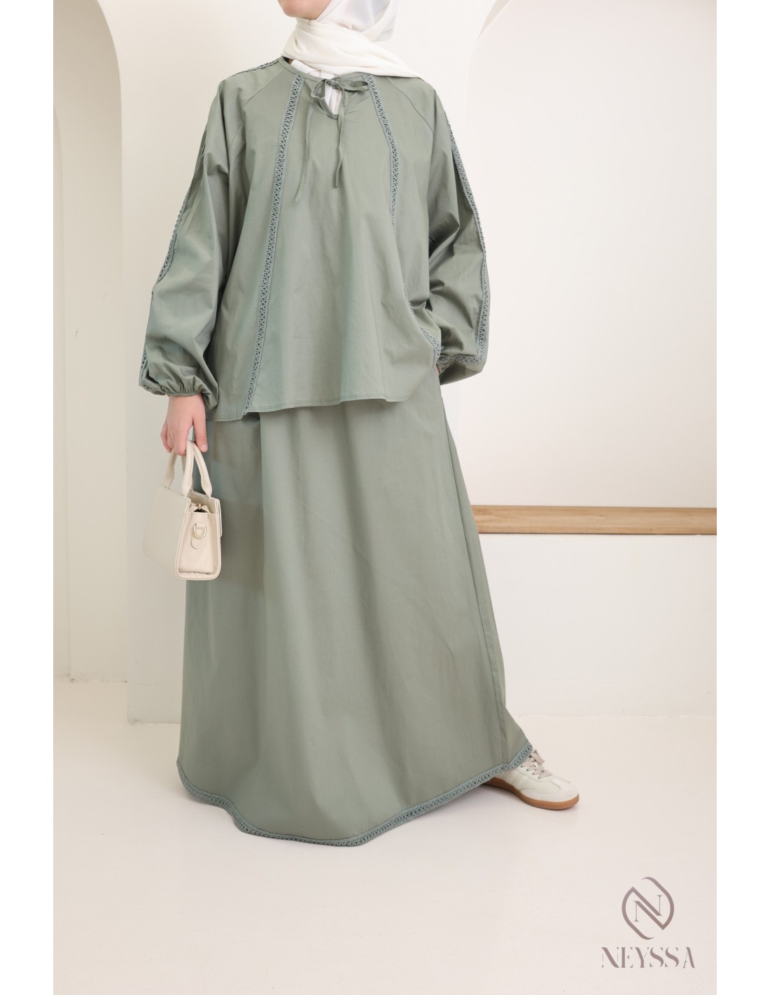 2-piece cotton set with blouse + long flared skirt for modern hijabi women