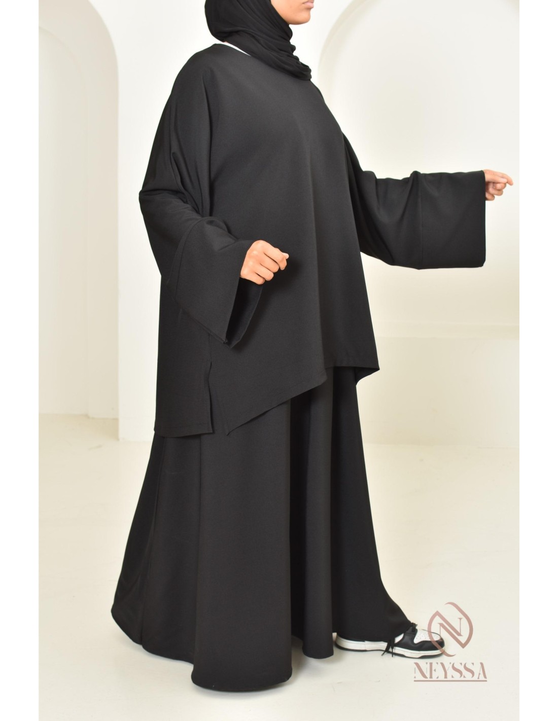 2-piece modern long skirt tunic set in black, ideal for veiled women