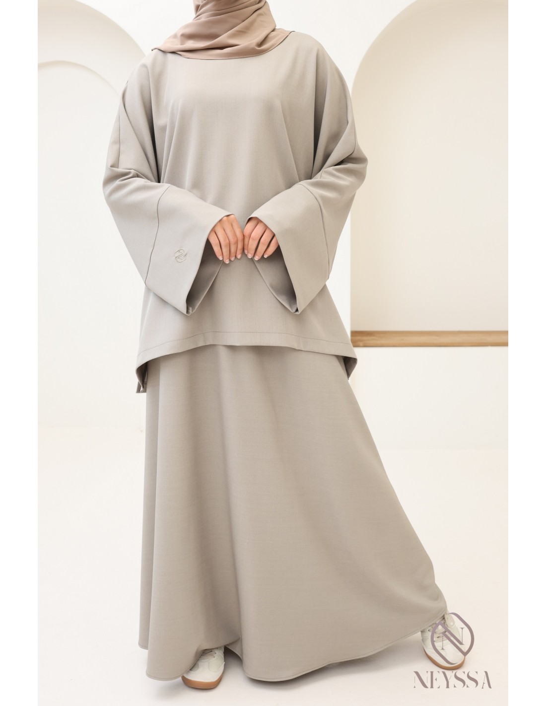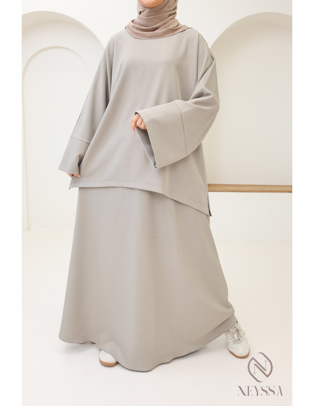 Modest 2-piece taupe set for women