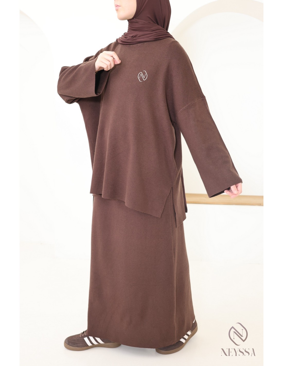 Here's the Neyssa Confection 2-piece woven skirt set , designed specifically to meet the needs of hijabi women. It offers modest elegance while allowing you to opt for chic and comfort.