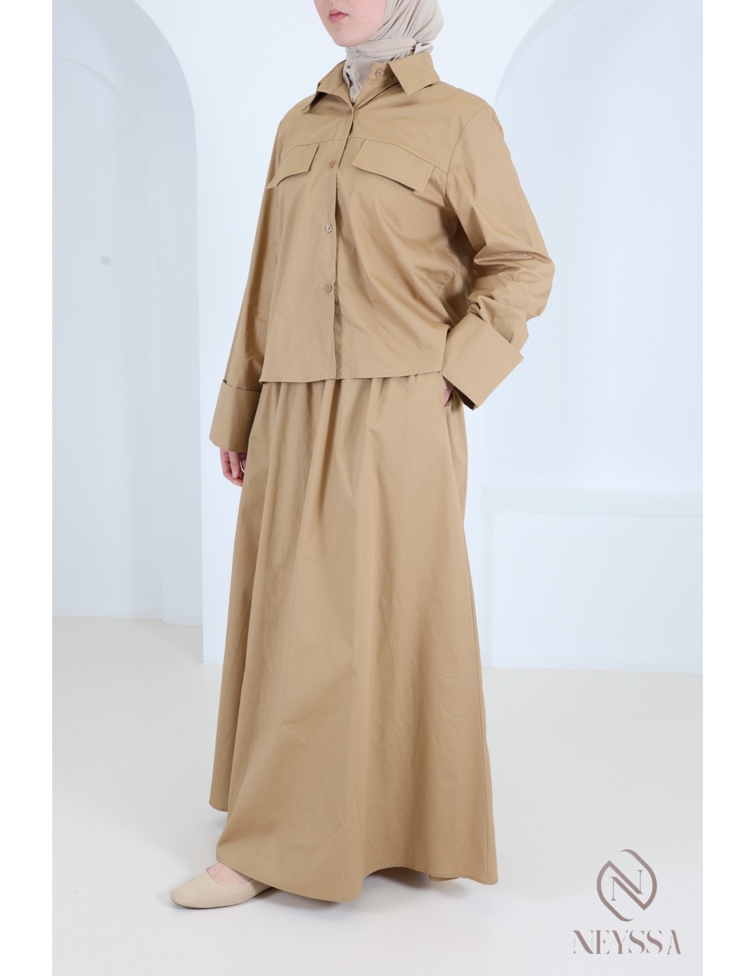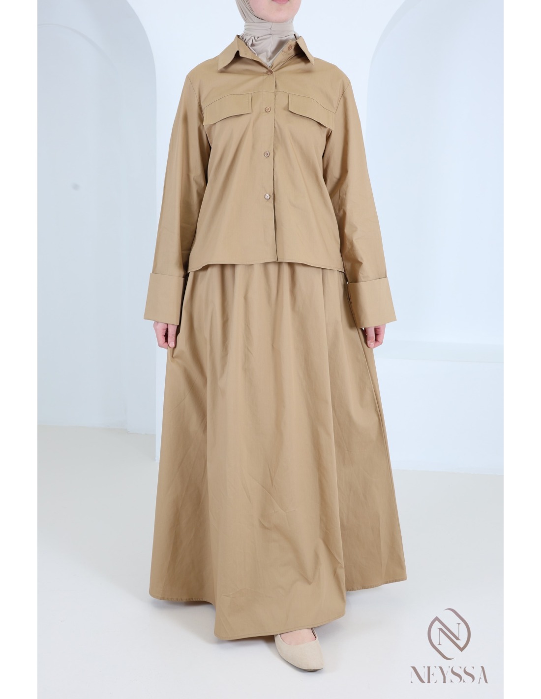 Why choose the 2-piece set: long flared skirt + cotton shirt ?