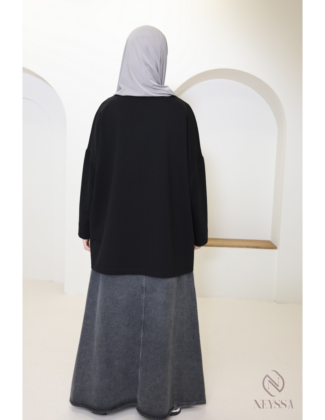 This mid-length, crew-neck sweatshirt-style T-shirt is the perfect choice for hijabis who want to combine fashion, comfort, and modesty in their everyday wear.