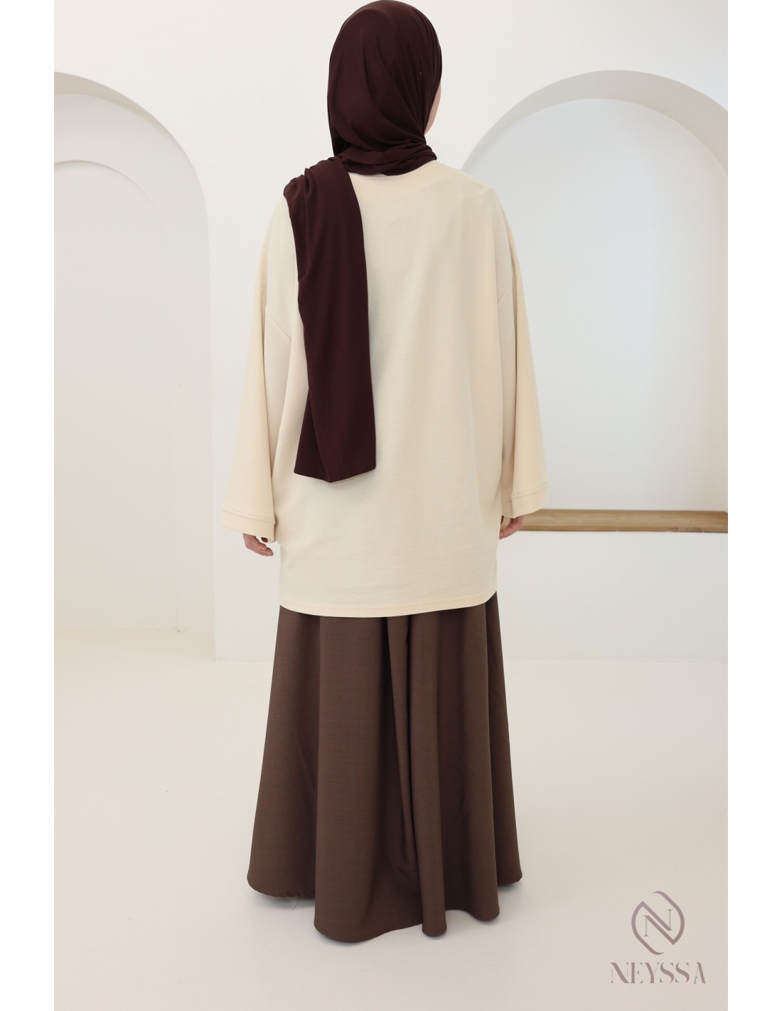 This mid-length, crew-neck sweatshirt-style T-shirt is the perfect choice for hijabis who want to combine fashion, comfort, and modesty in their everyday wear.