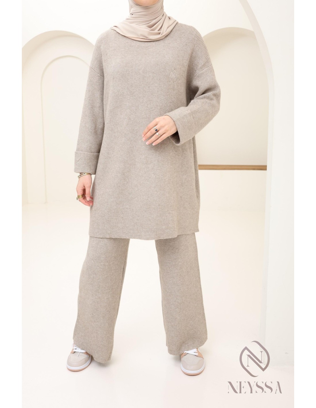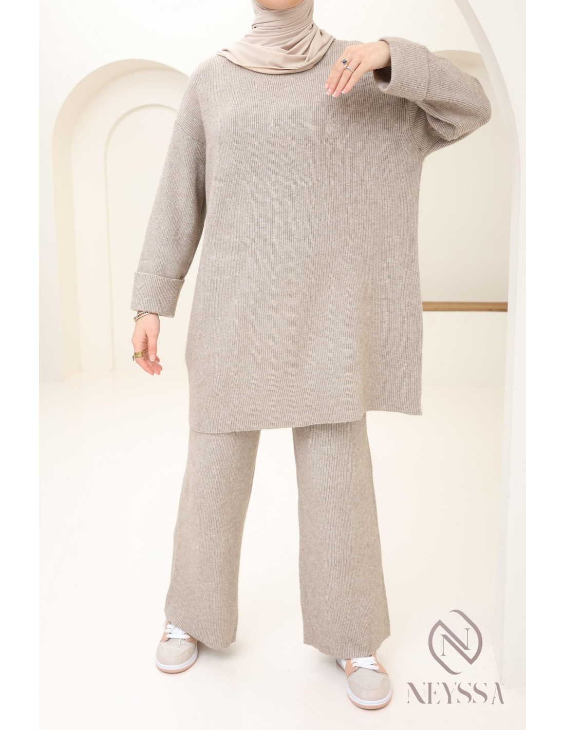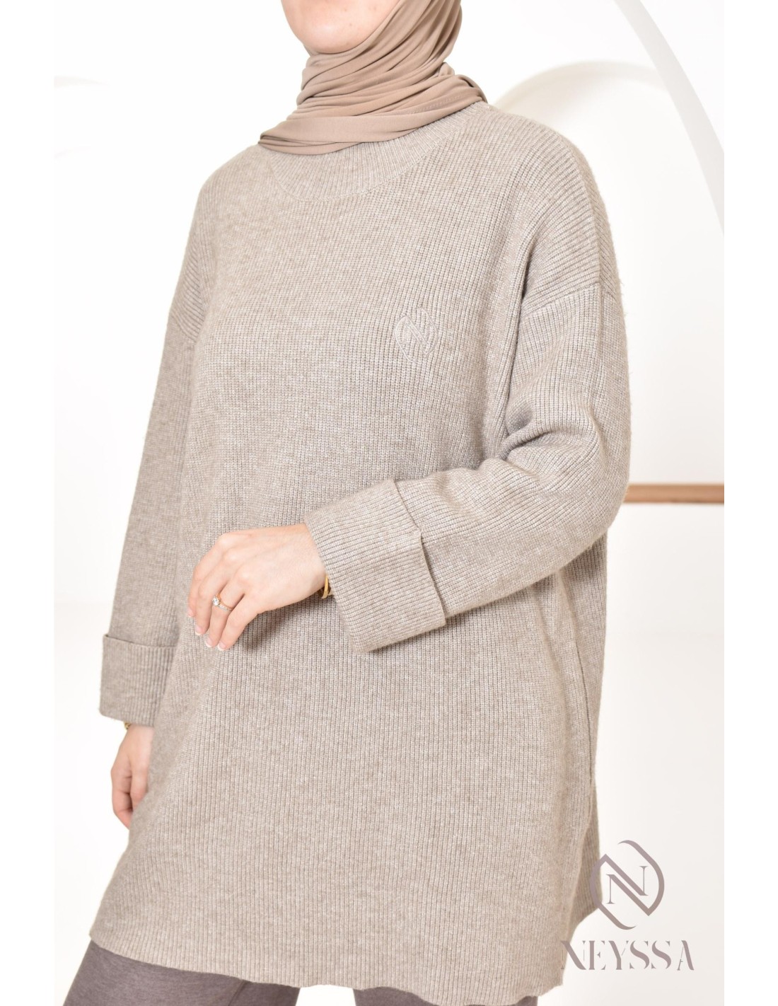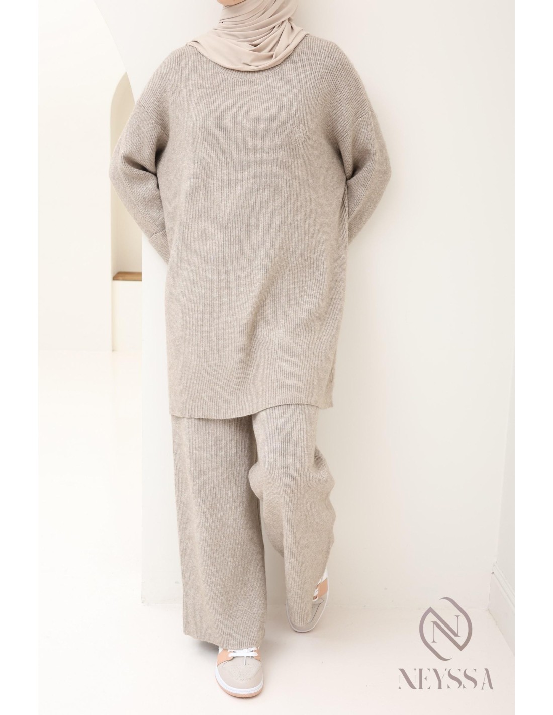 Women's taupe knit hijabi