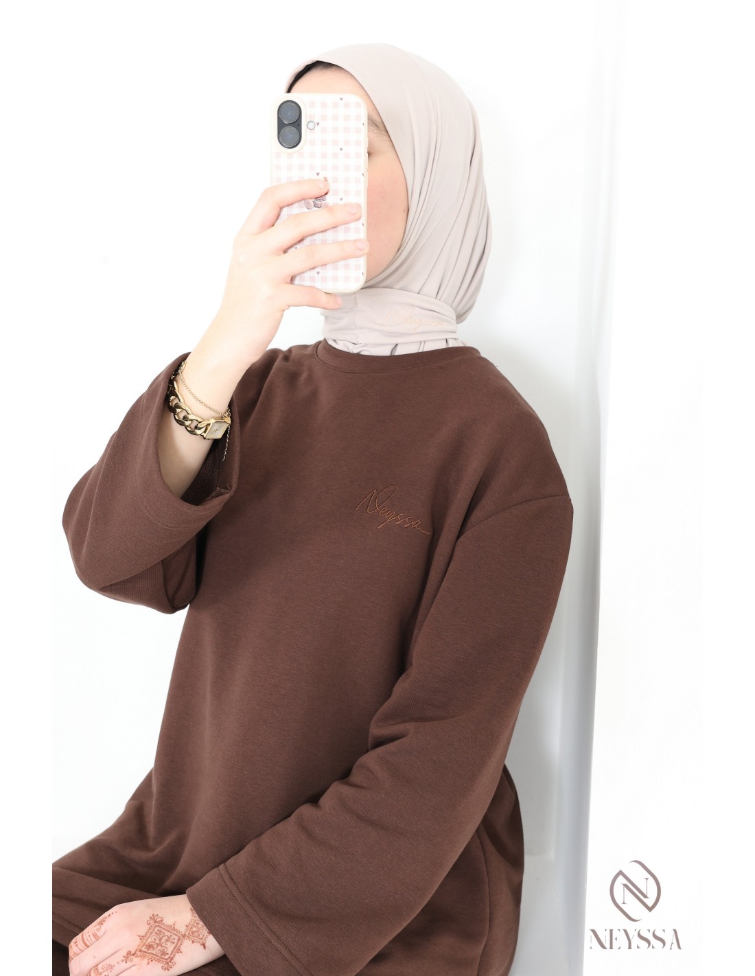 You'll love this brown 2-piece cotton set for athletic hijabi women :