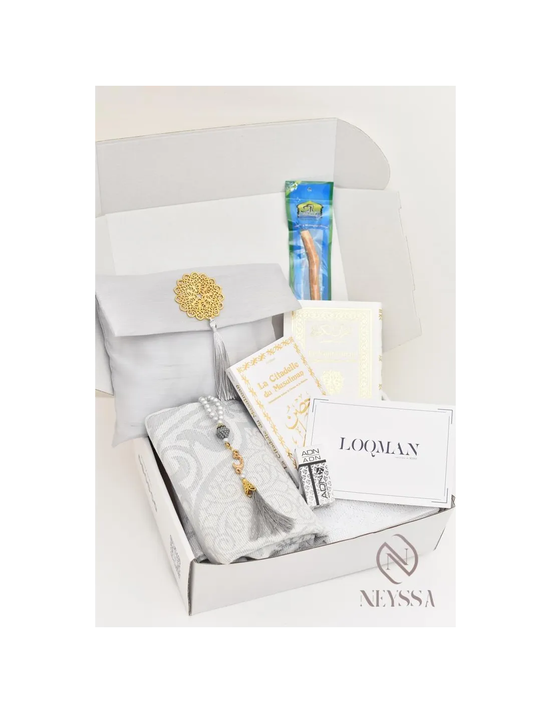 A Loqman-branded box with pretty inscriptions: