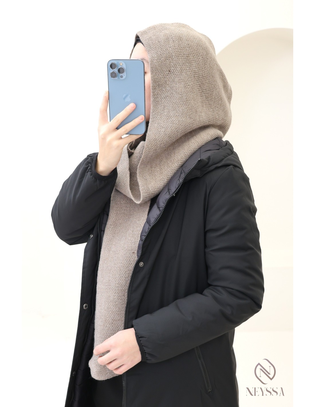Perfect hooded scarf for hijabis, super warm, a winter essential.