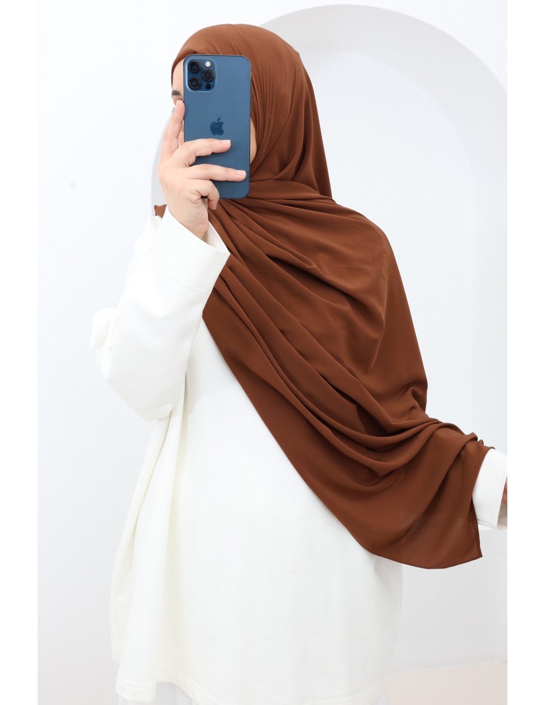 This hijab has been specially designed to complete your chic or sportswear outfits, for everyday wear. Ideal to wear with an abaya for a Khaleeji look.