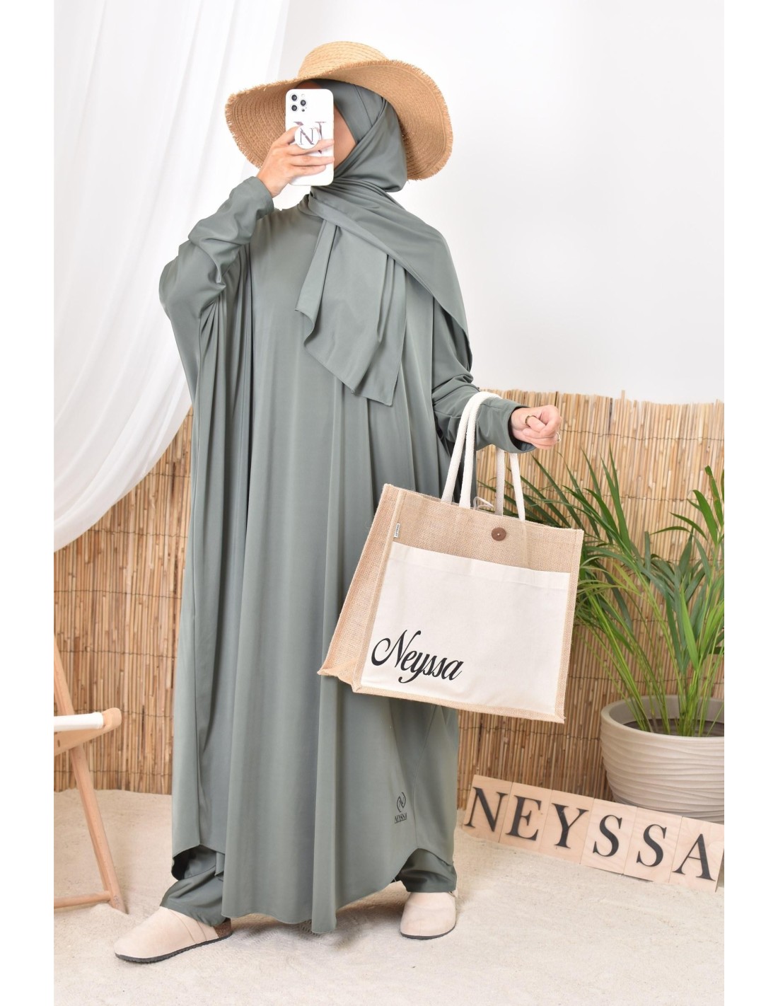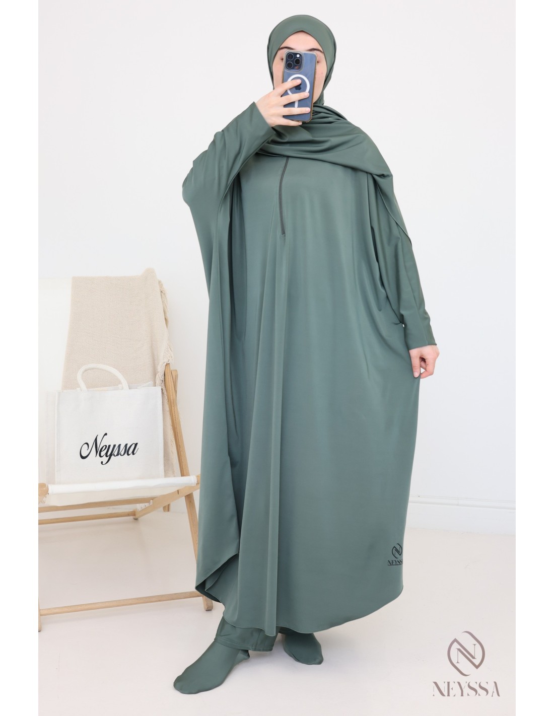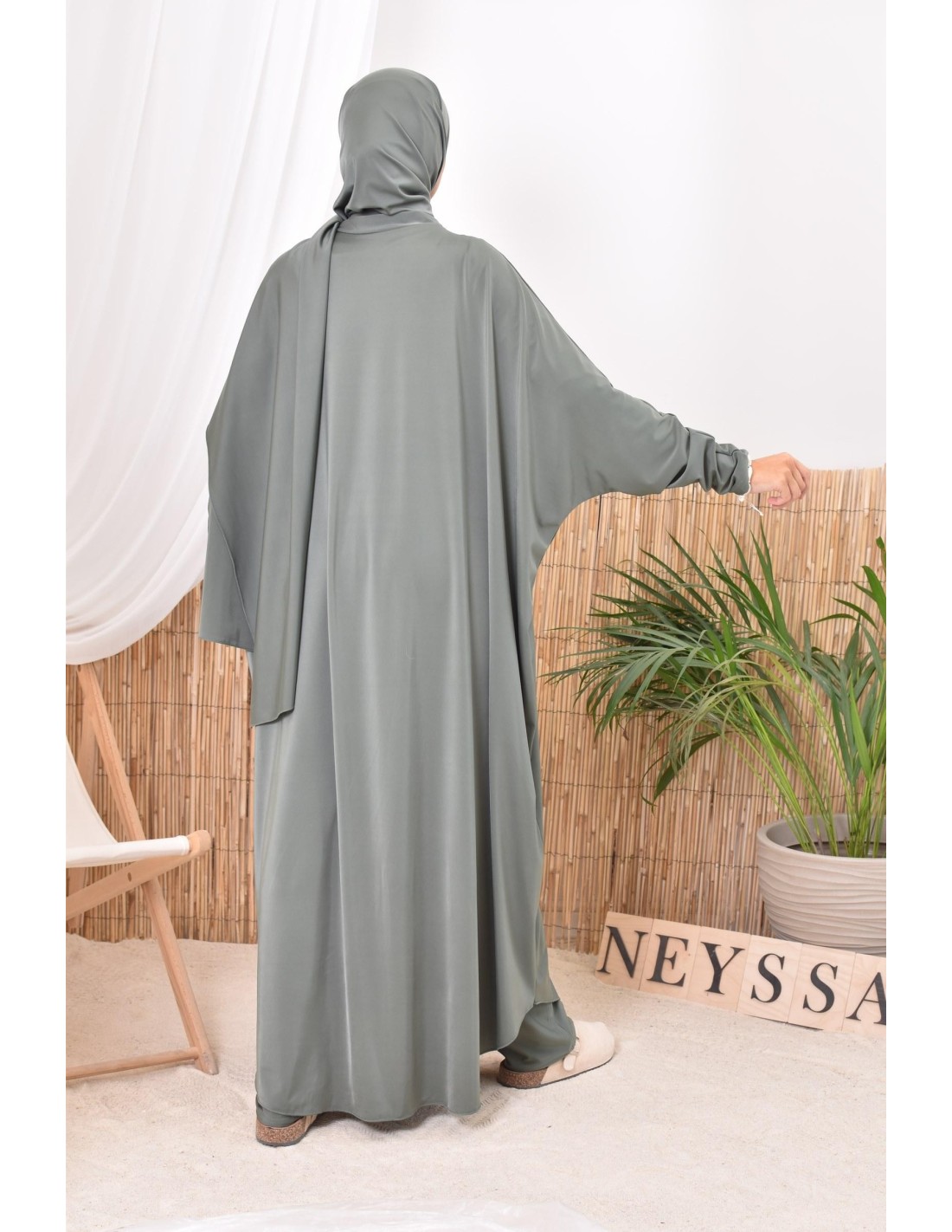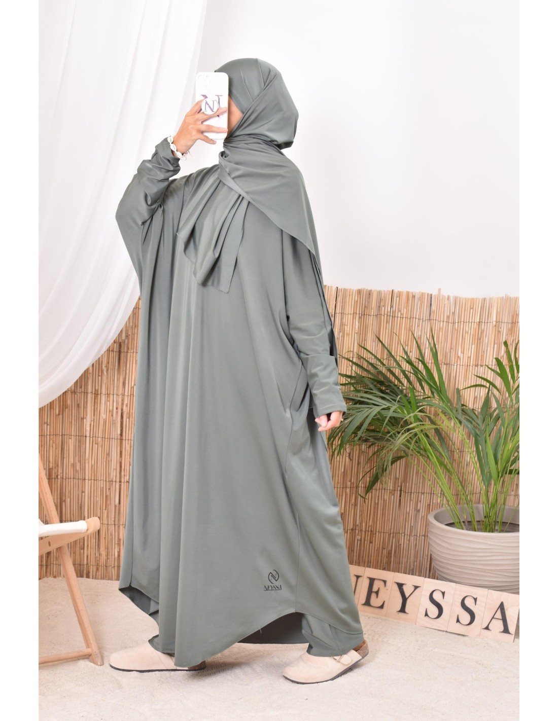 - Confection Neyssa: This bathing jilbab has been made in our workshops with quality fabric