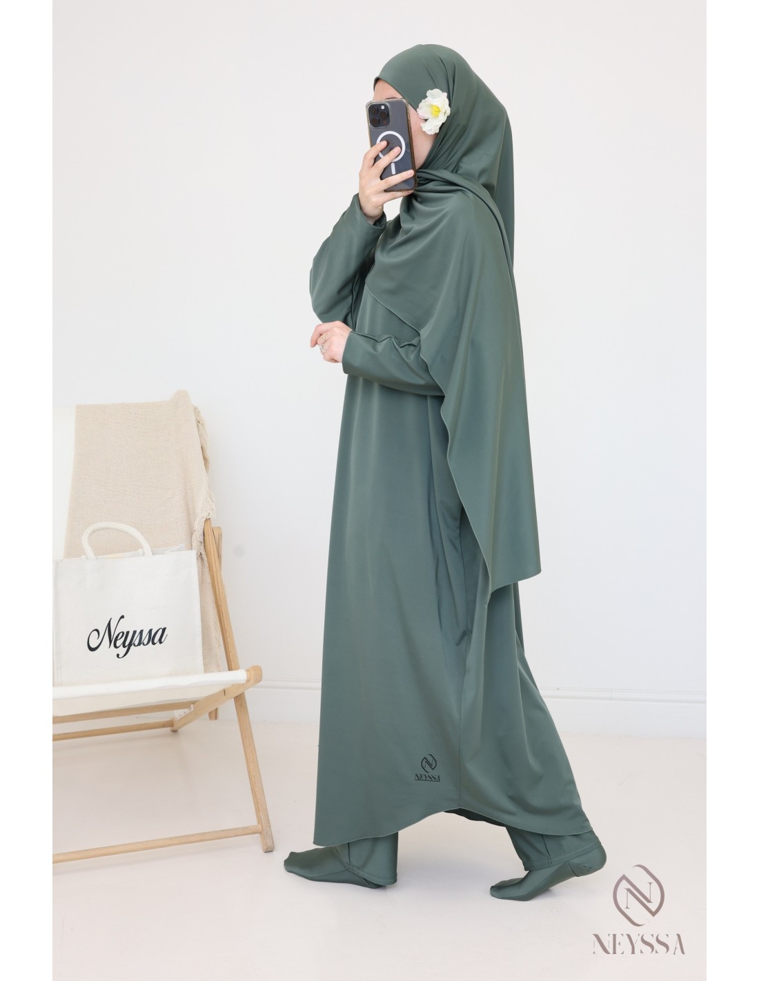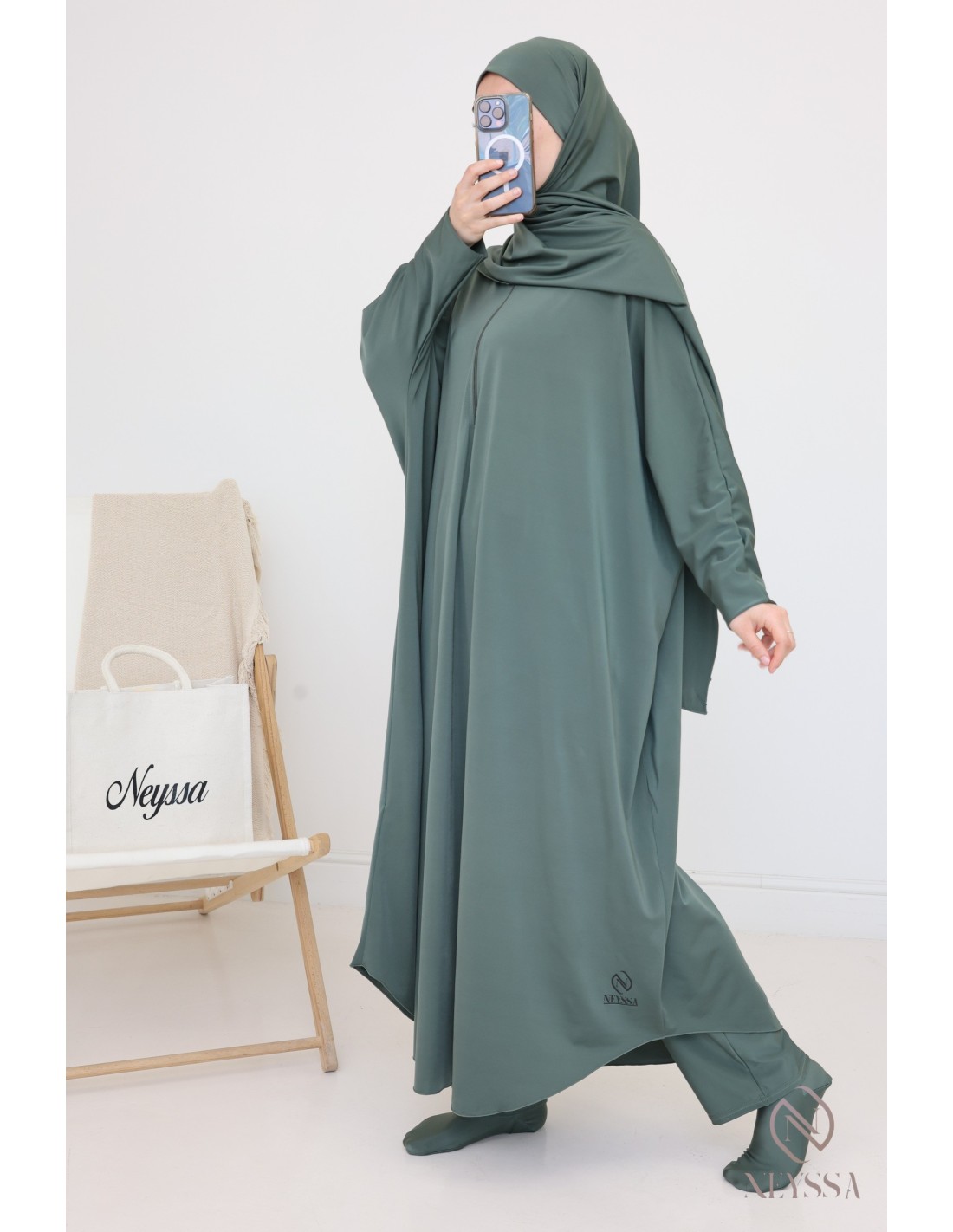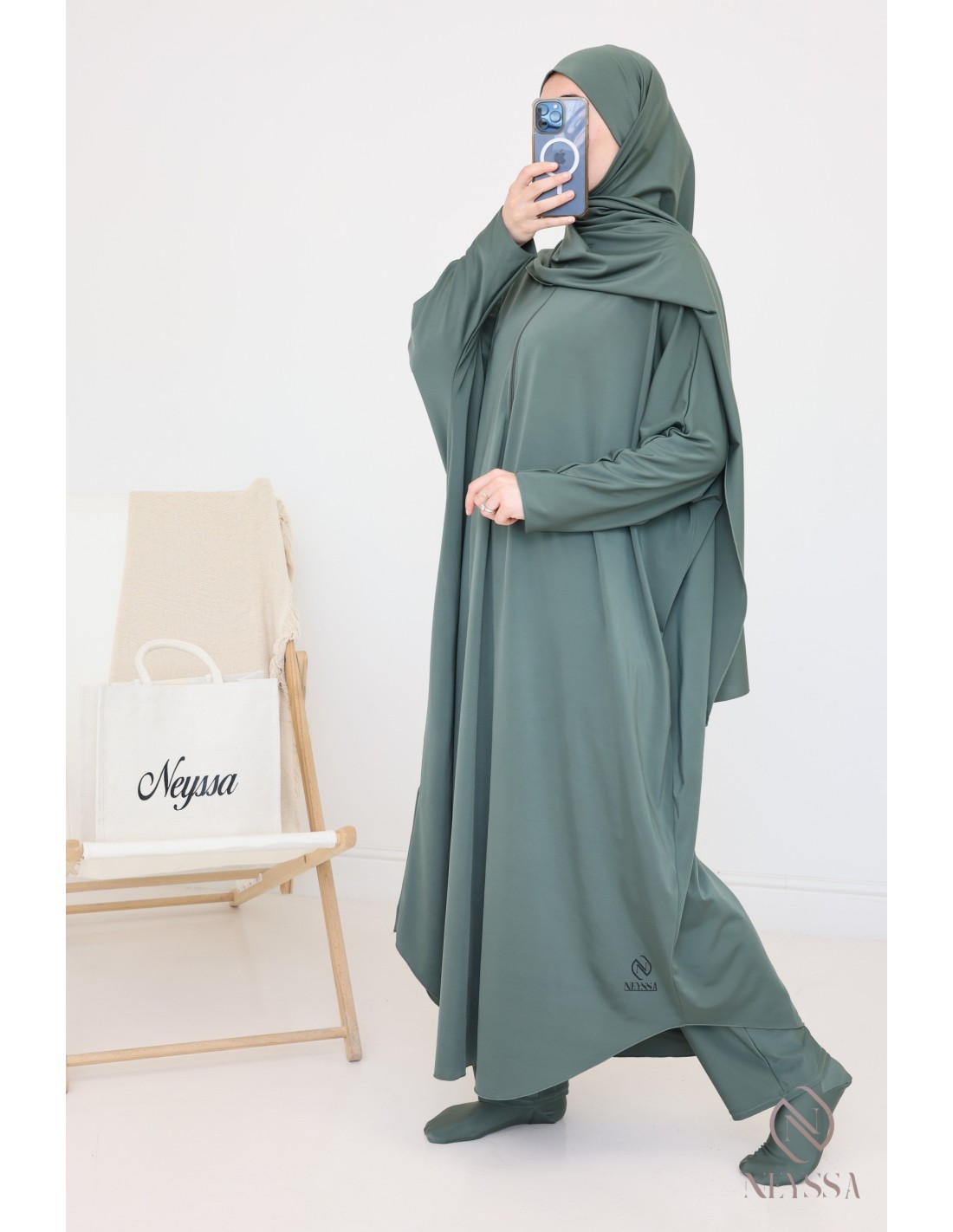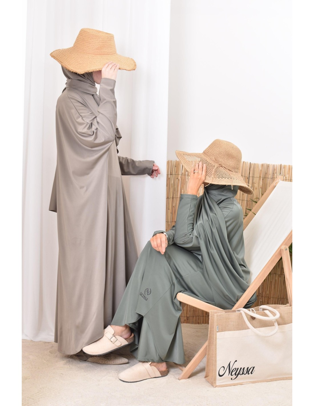 - Confection Neyssa: This bathing jilbab has been made in our workshops with quality fabric