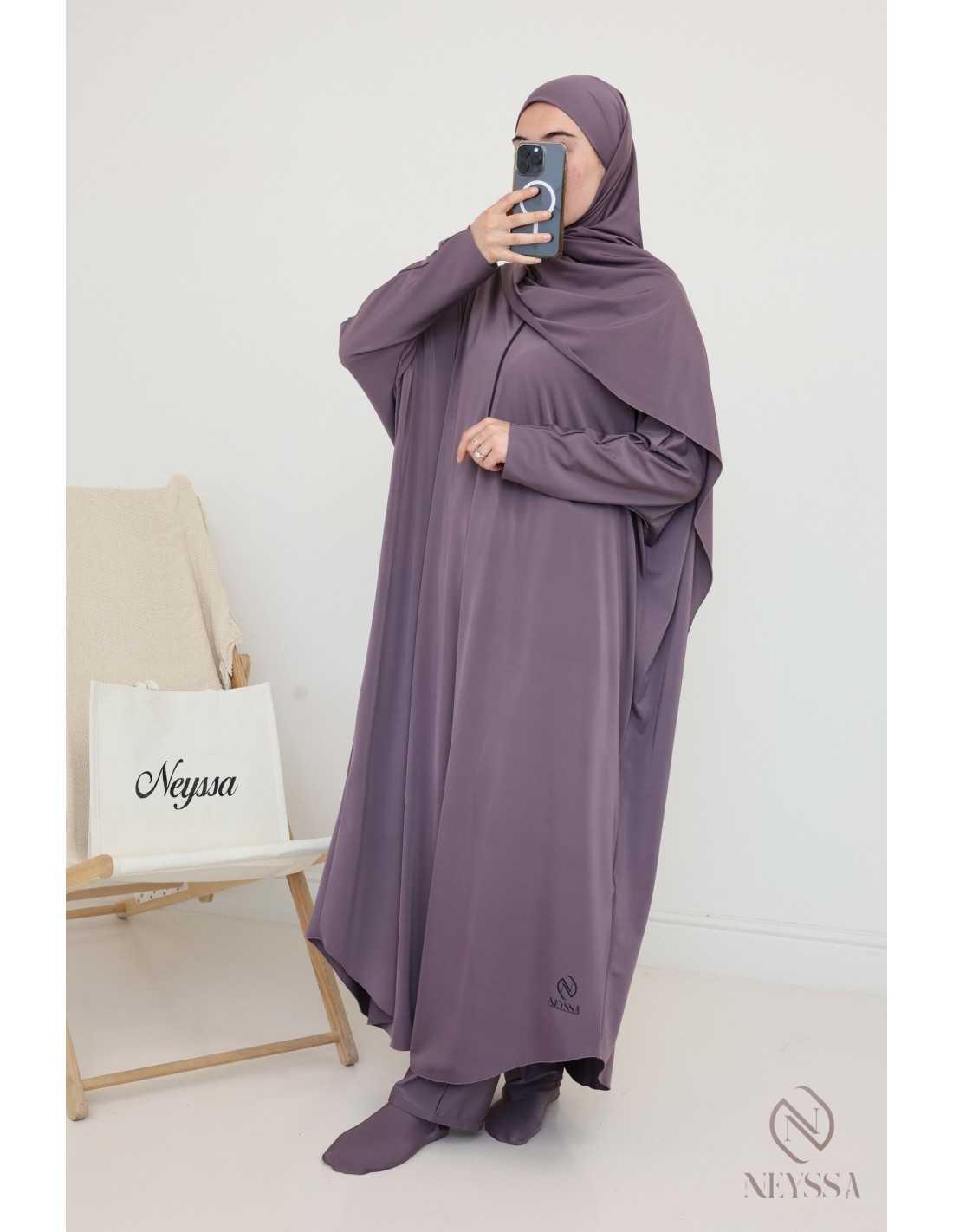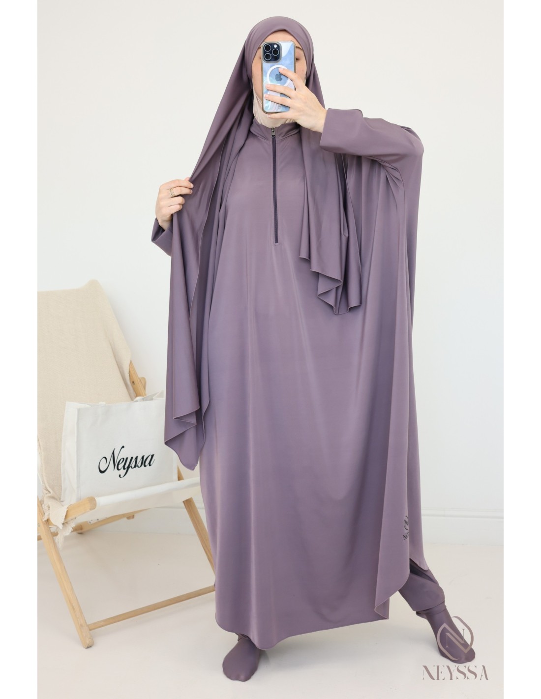 - Confection Neyssa: This bathing jilbab has been made in our workshops with quality fabric