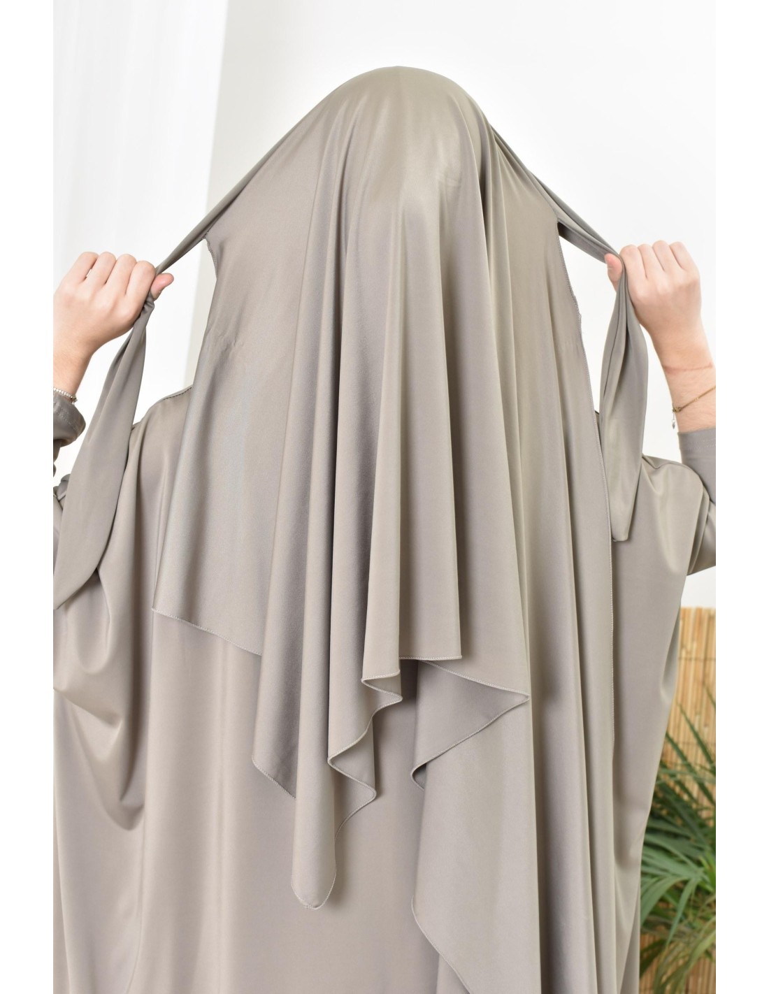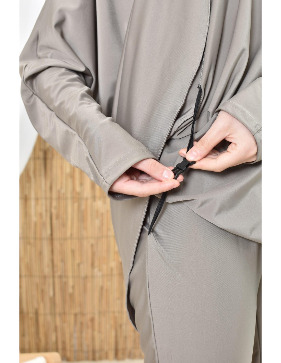 Trendy Taupe Burkini Swim Jilbab for Women with Tie-Up Hijab