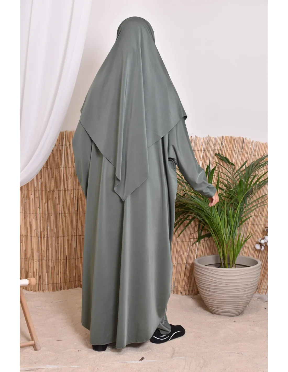 Preserved modesty: This jilbab of bath is made with a concern of modesty, covering entirely the body and the head thanks to its matched khimar. You can thus bathe you in all peace, by preserving your intimacy. It is composed of its matching pants.