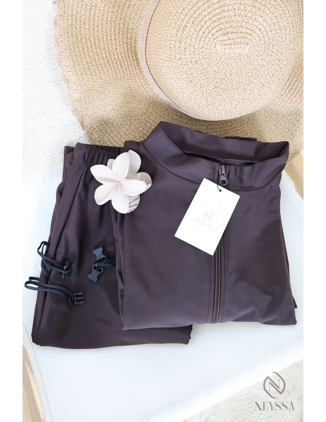 You’ll fall in love with the water-repellent 3-piece Chocolate burkini:
