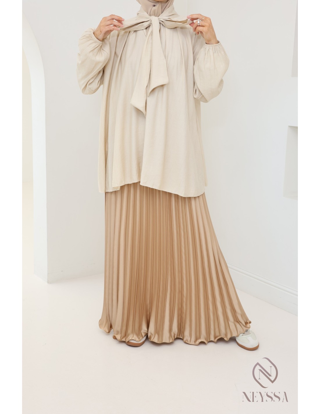 Looking for a long satin pleated skirt to complete your Muslim women's wardrobe?